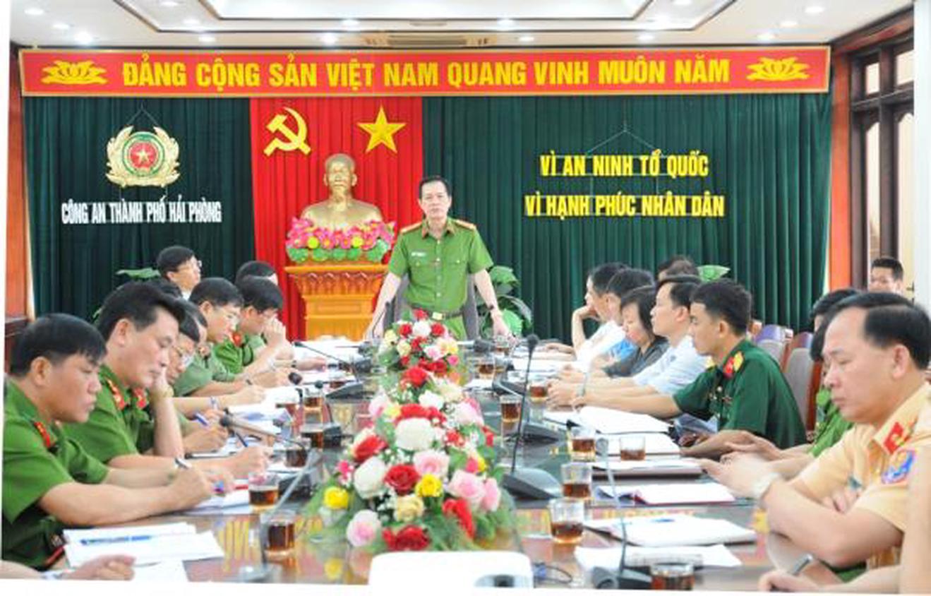 Đại tá Nguyễn Trọng Phượng, Phó Giám đốc Công an thành phố chủ trì cuộc họp triển khai các công tác bảo đảm an ninh trật tự Lễ hội Hoa Phượng đỏ - Hải Phòng năm 2017.