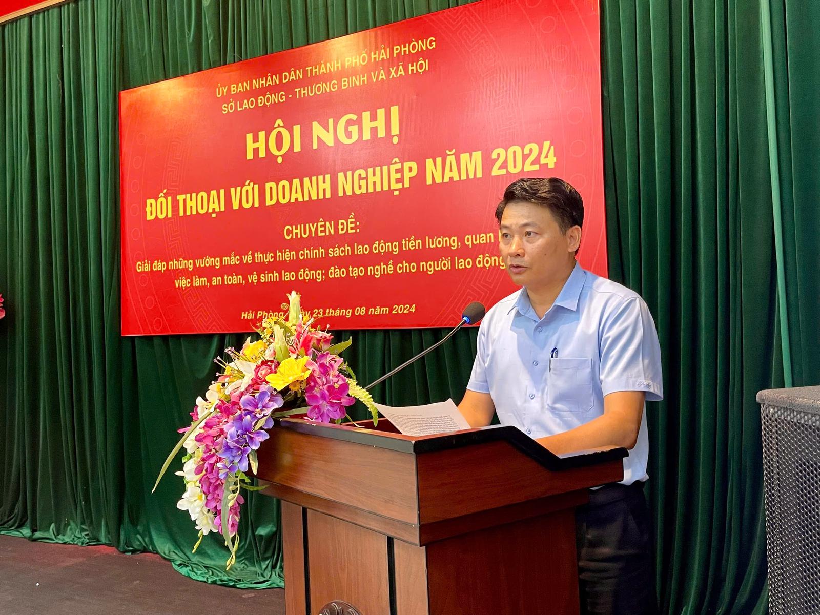 (Thanh tra) - Ngày 23/8, Sở Lao động - Thương binh và Xã hội thành phố Hải Phòng tổ chức đối thoại với doanh nghiệp năm 2024, giải đáp những vướng mắc về thực hiện chính sách lao động tiền lương, quan hệ lao động; việc làm, an toàn, vệ sinh lao động; đào tạo nghề cho người lao động.