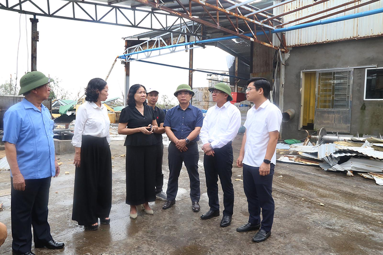 Đoàn đến thăm và động viên Công ty TNHH Việt Trường tại phường Hải Sơn, quận Đồ Sơn. Công ty chuyên chế biến thủy sản xuất khẩu, sản xuất bột các thức ăn thủy sản và hậu cần nghề cá, toàn bộ nhà xưởng bị tốc mái, hơn 1.000 tấn hàng chuẩn bị xuất sang châu Âu bị hư hỏng. Lãnh đạo công ty kiến nghị và mong muốn các ngân hàng hỗ trợ việc khoanh, giãn, hoãn nợ cho công ty để khắc phục hậu quả do bão số 3 gây ra.