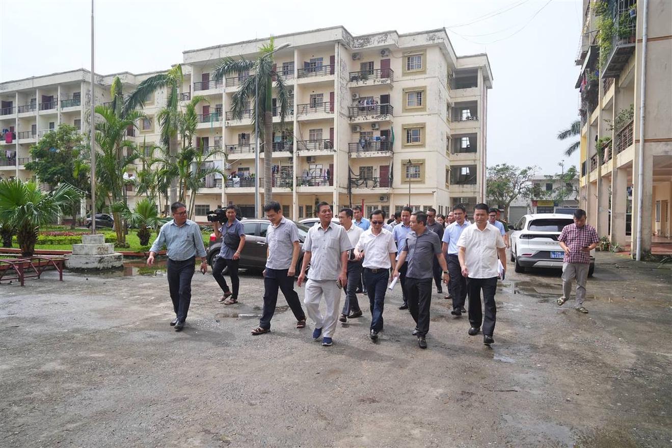Chủ tịch UBND thành phố Nguyễn Văn Tùng kiểm tra thực địa tại dự án nhà ở xã hội trên địa bàn thành phố. Ảnh: TT