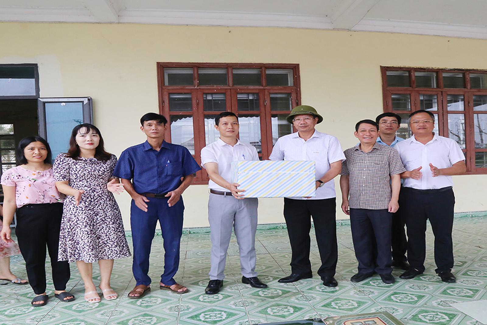 Phó Chủ tịch Thường trực UBND thành phố Lê Anh Quân trao quà cho Trường Tiểu học và THCS Lê Khắc Cẩn. Ảnh: KT
