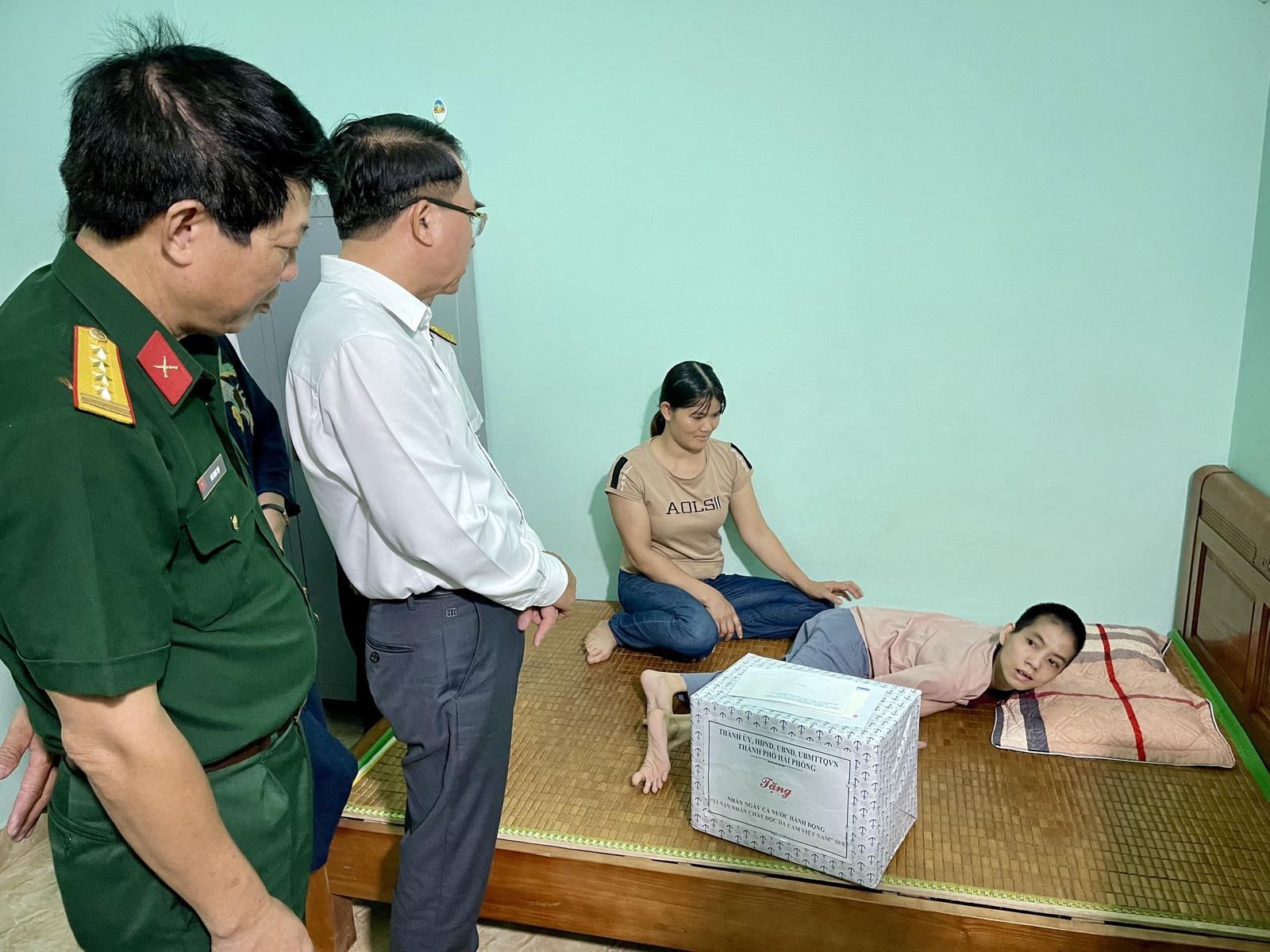 Đoàn đến thăm gia đình ông Nguyễn Ngọc Huy, người hoạt động kháng chiến nhiễm chất độc hóa học da cam. Ảnh: KT