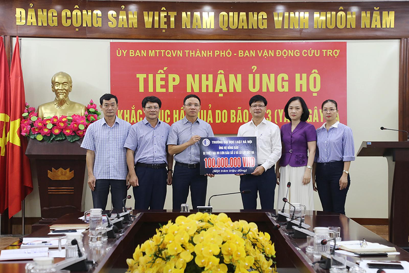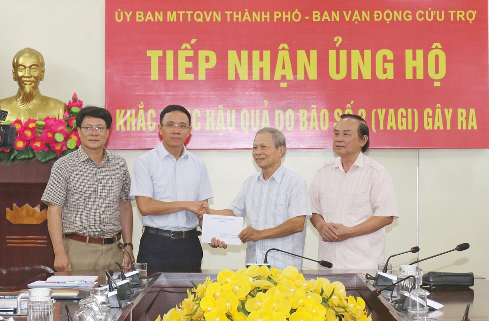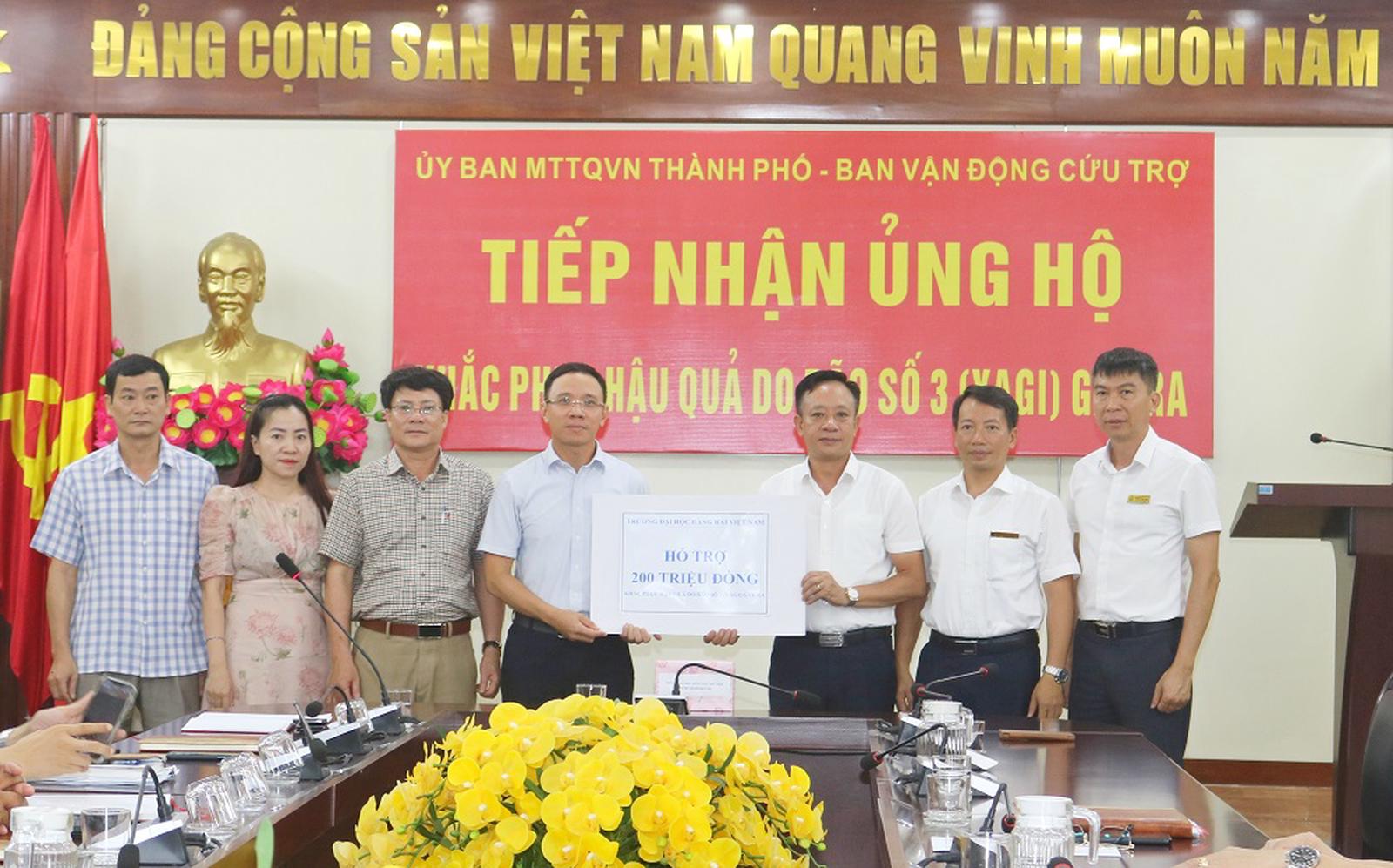 Trước đó, ngày 13/9, Ủy ban MTTQ Việt Nam - Ban Vận động cứu trợ thành phố tổ chức tiếp nhận ủng hộ từ Trường Đại học Hàng Hải Việt Nam 200 triệu đồng.