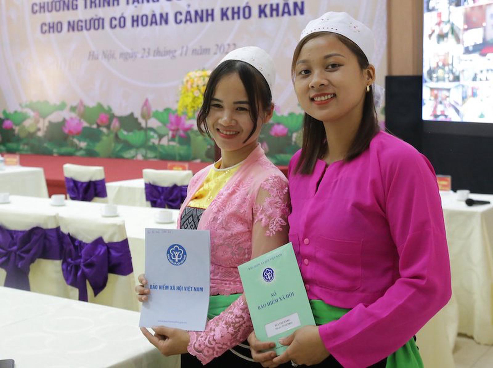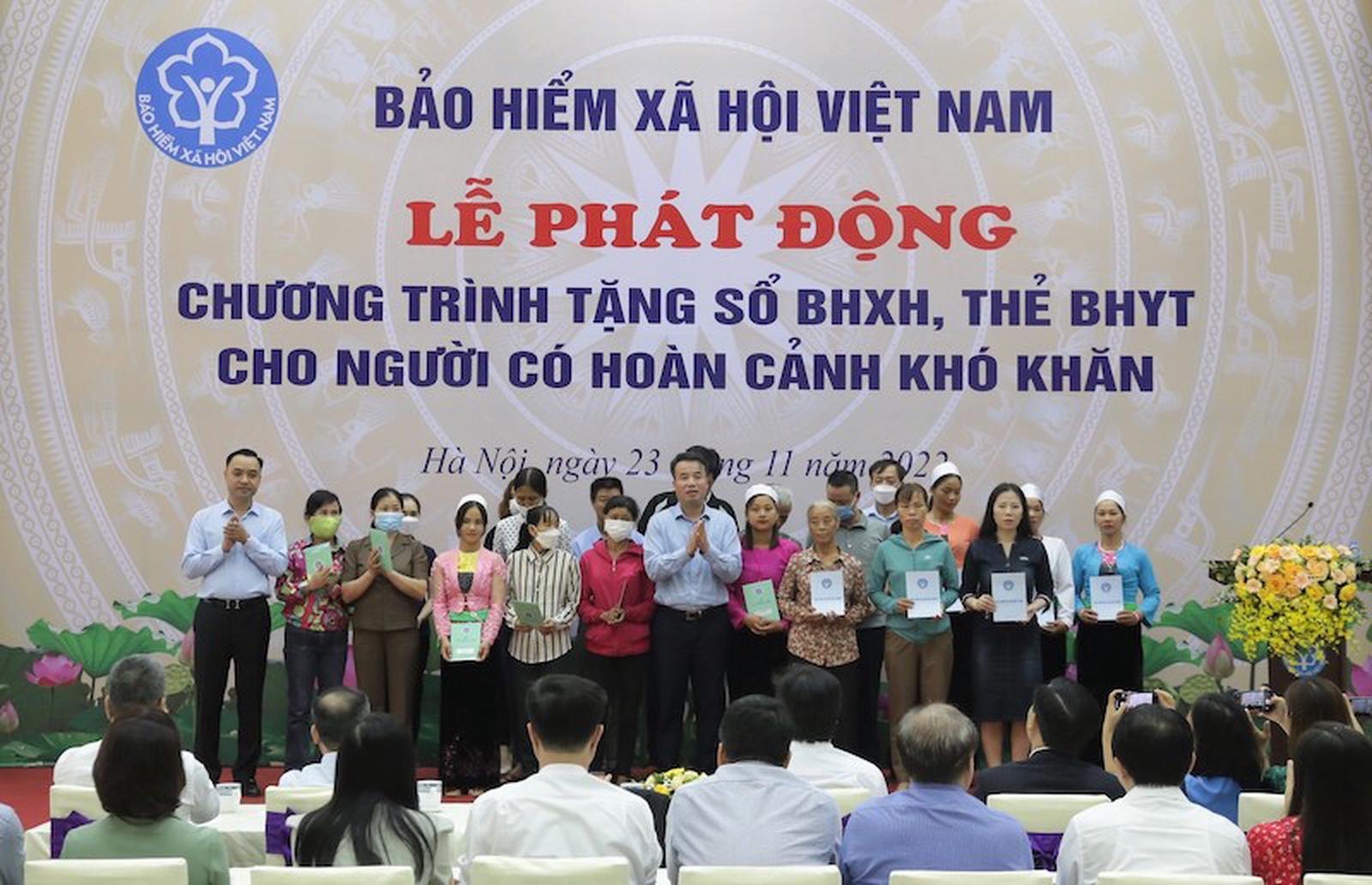 Đơn cử, năm 2022, ngành BHXH Việt Nam đã thực hiện Chương trình “Tặng sổ BHXH, thẻ BHYT, trao quà - mang Tết ấm đến với người nghèo Xuân Nhâm Dần” và đã trao tặng: 3.521 suất quà cho bệnh nhân có hoàn cảnh khó khăn tại 63 tỉnh, TP; 587 sổ BHXH cho người dân có hoàn cảnh khó khăn tại 3 tỉnh: Sơn La, TP Đà Nẵng, Hà Giang; 10.230 thẻ BHYT tại 40 BHXH tỉnh, TP cho người dân có hoàn cảnh khó khăn với tổng kinh phí mua tặng sổ BHXH, thẻ BHYT và các phần quà trong Chương trình trị giá hơn 5,9 tỷ đồng.