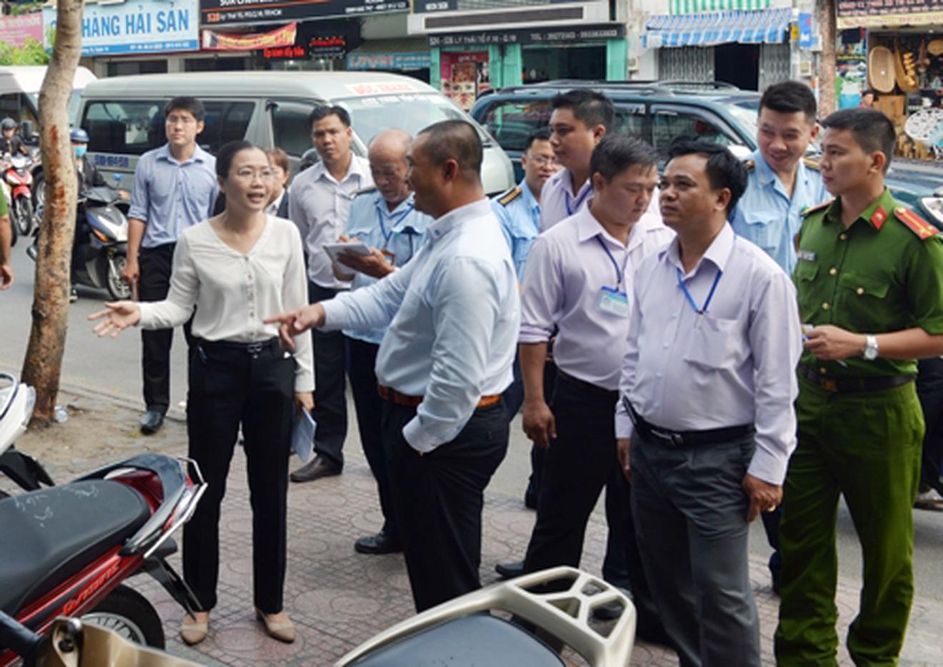 Sáng 13/3, bà Nguyễn Thị Thu Nga – Phó chủ tịch UBND quận 10 – dẫn đầu đoàn liên ngành gồm cảnh sát trật tự, trật tự đô thị… kiểm tra, chấn chỉnh tình trạng lấn chiếm lòng lề đường trên địa bàn.