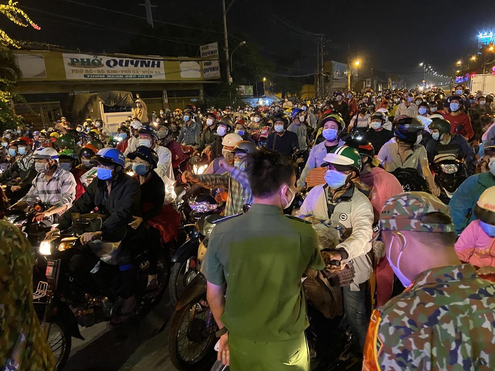 Theo ghi nhận của PV, đêm ngày 30/9, hàng nghìn người dân từ TP HCM đi xe máy cùng nhiều đồ đạc đã di chuyển theo Quốc lộ 1A hướng về miền Tây, khi đến chốt kiểm soát tại khu vực giáp ranh giữa TP HCM và tỉnh Long An, lực lượng chức năng đã chốt chặn, yêu cầu dừng lại và quay đầu xe. Phần lớn trong số này là công nhân, lao động tự do sống tại TP HCM.