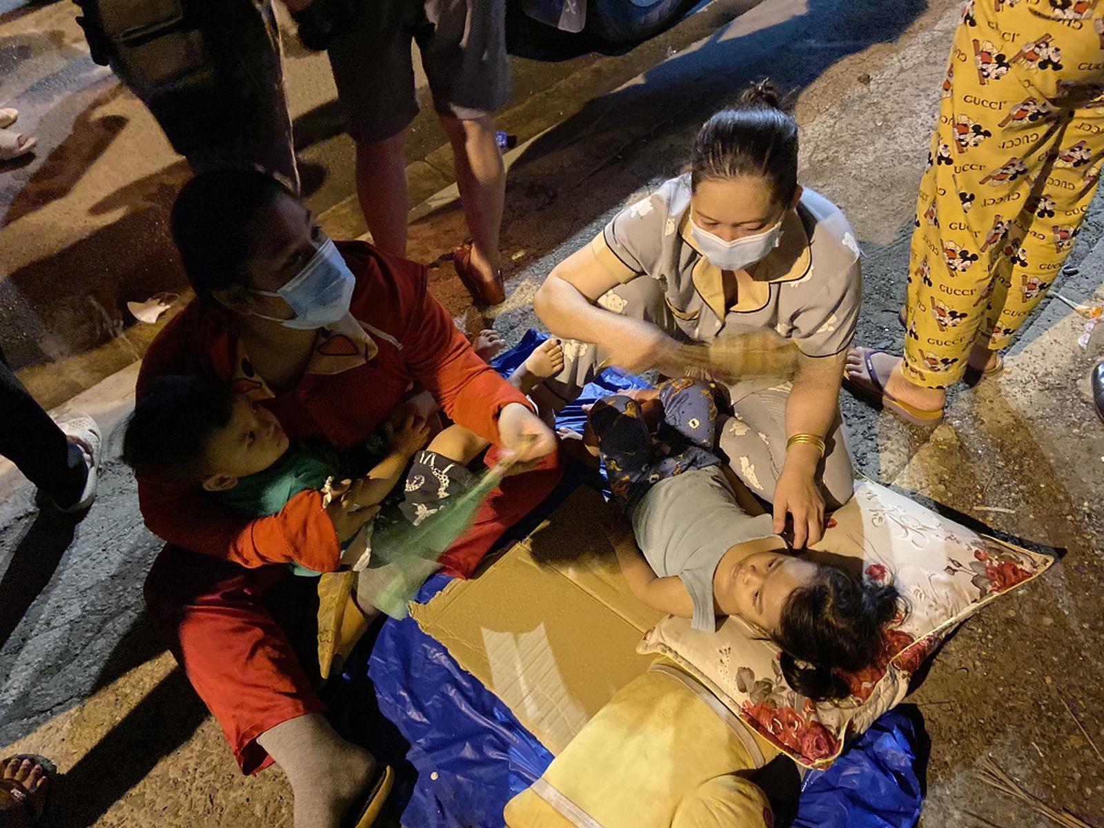 Càng về khuya, số lượng người đi xe máy đến chốt kiểm soát càng đông, dẫn tới tình trạng ùn ứ nghiêm trọng. Một số người già, trẻ nhỏ, phụ nữ có thai đi cùng đã không chịu nổi, buộc phải vào vỉa hè để ngồi nghỉ…