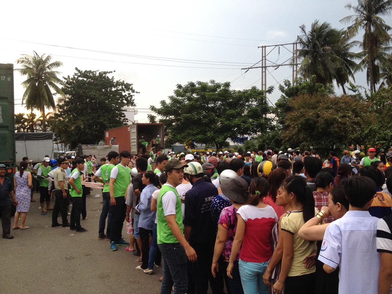 Nghe tin, lượng người tập trung đến xin nước mỗi lúc một đông. Đơn vị phát nước yêu cầu người dân xếp thành nhiều hàng dài để phát nước. Tuy nhiên, do lượng công nhân tan ca đổ ra xin nước quá đông khiến các nhân viên tại đây phát không kịp tạo nên khung cảnh nhốn nháo, hỗn loạn.