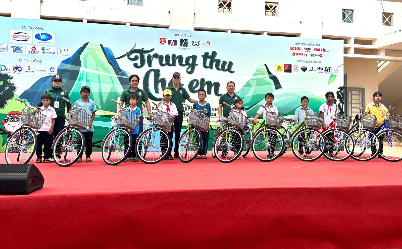 Chương trình đã trao tặng 20 xe đạp cho các em thiếu nhi tại xã Ea R'bin. Ảnh: AM