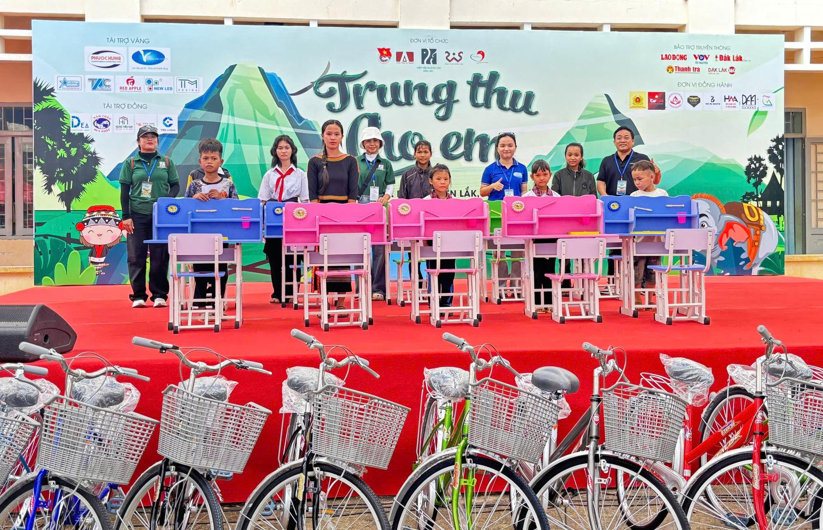 Ban tổ chức tặng 400 phần quà, bánh trung thu cho các em nhỏ. Ngoài ra, chương trình còn tặng 20 xe đạp, 10 bộ bàn ghế học sinh, 400 đôi dép... động viên các em nhỏ.