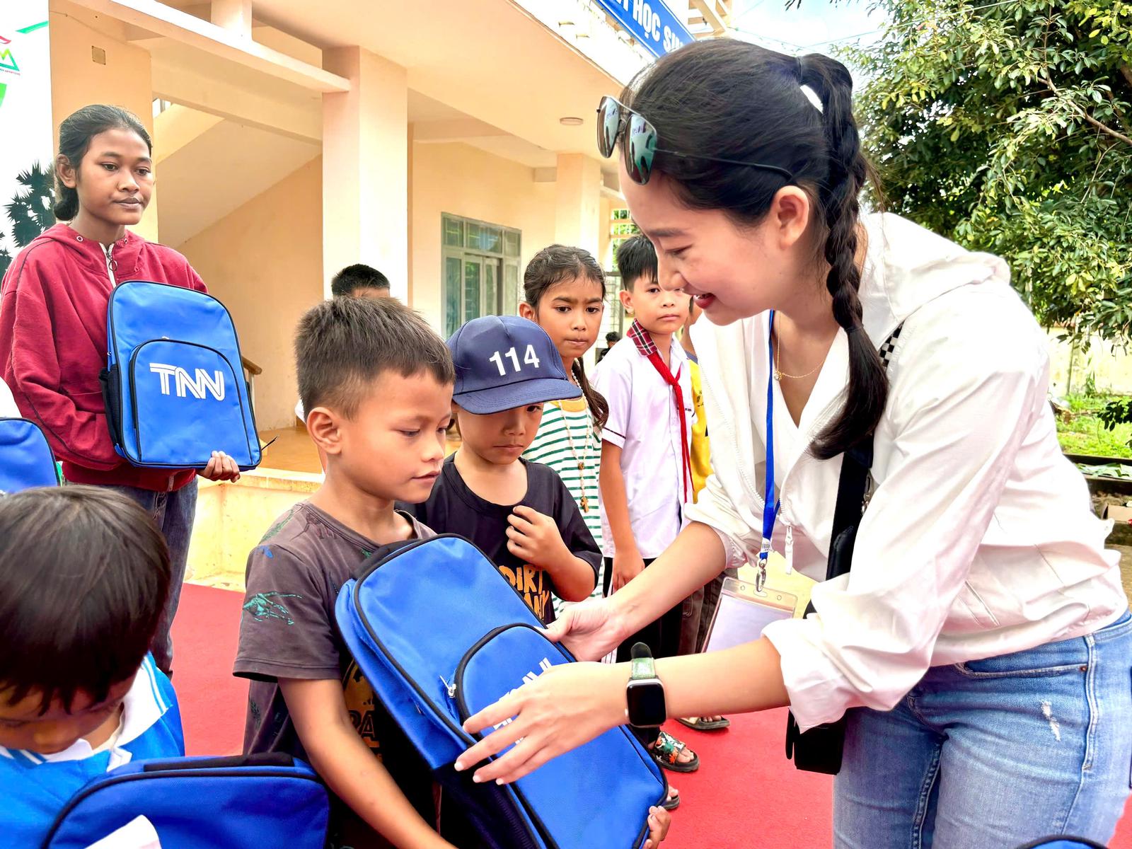 Chương trình đã trao tặng 50 cặp học sinh cho các em thiếu nhi. Ảnh: AM