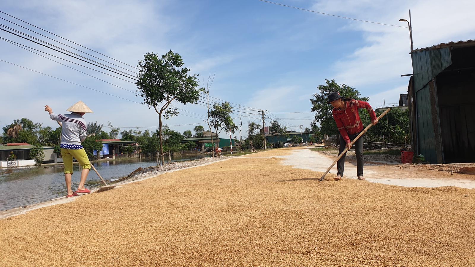 Vừa đổ lúa ra đường bê tông nhựa của xóm để phơi cho kịp nắng, chị Liễu nói trong nước mắt: Từ hôm qua tới giờ, vợ chồng tôi nhìn mấy chục tấn lúa ngập trong nước mà bất lực. Số lúa vợ chồng thu mua cả mùa qua bỗng nhiên gần như mất trắng. Tiền ăn, tiền học của con đều nằm ở đó cả, bây giờ mất sạch rồi. Lúa bị đổi màu, bốc mùi, mọc mầm cả rồi, phơi rồi bán rẻ cho người ta làm thức ăn cho trâu bò chứ người làm sao ăn được.