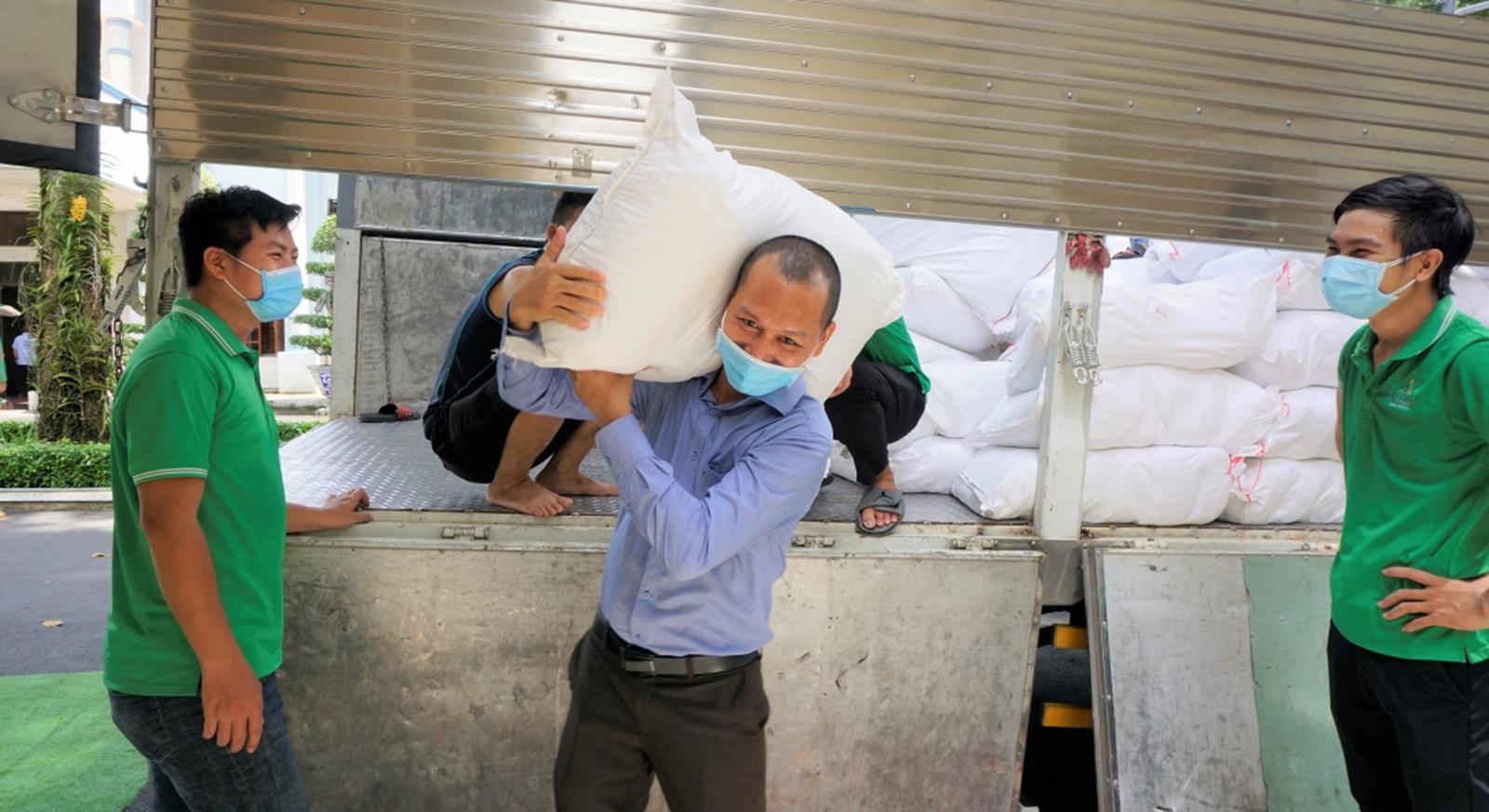 Ngoài trang thiết bị y tế, Hệ thống 5F còn ủng hộ gạo để hỗ trợ phòng chống dịch Covid-19
