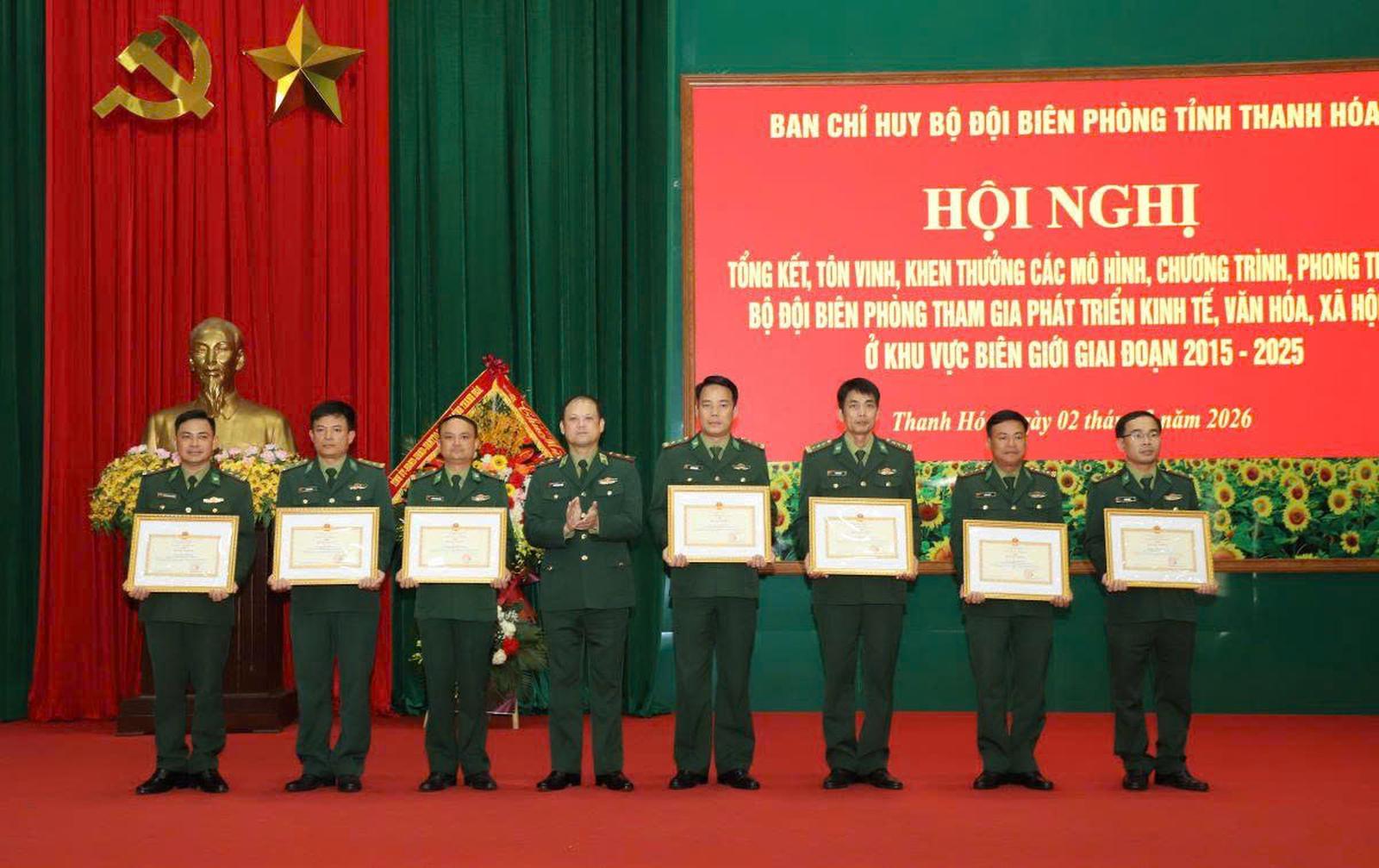 Nhân dịp này, nhiều tập thể và cá nhân có thành tích xuất sắc đã được biểu dương, khen thưởng. Cụ thể, Bộ Tư lệnh Bộ đội Biên phòng tặng Bằng khen cho 7 tập thể và 21 cá nhân; UBND tỉnh Thanh Hóa tặng Bằng khen cho 2 tập thể và 5 cá nhân; Ban Chỉ huy Bộ đội Biên phòng tỉnh tặng Giấy khen cho 2 tập thể và 13 cá nhân có thành tích xuất sắc trong triển khai thực hiện các mô hình, chương trình, phong trào.