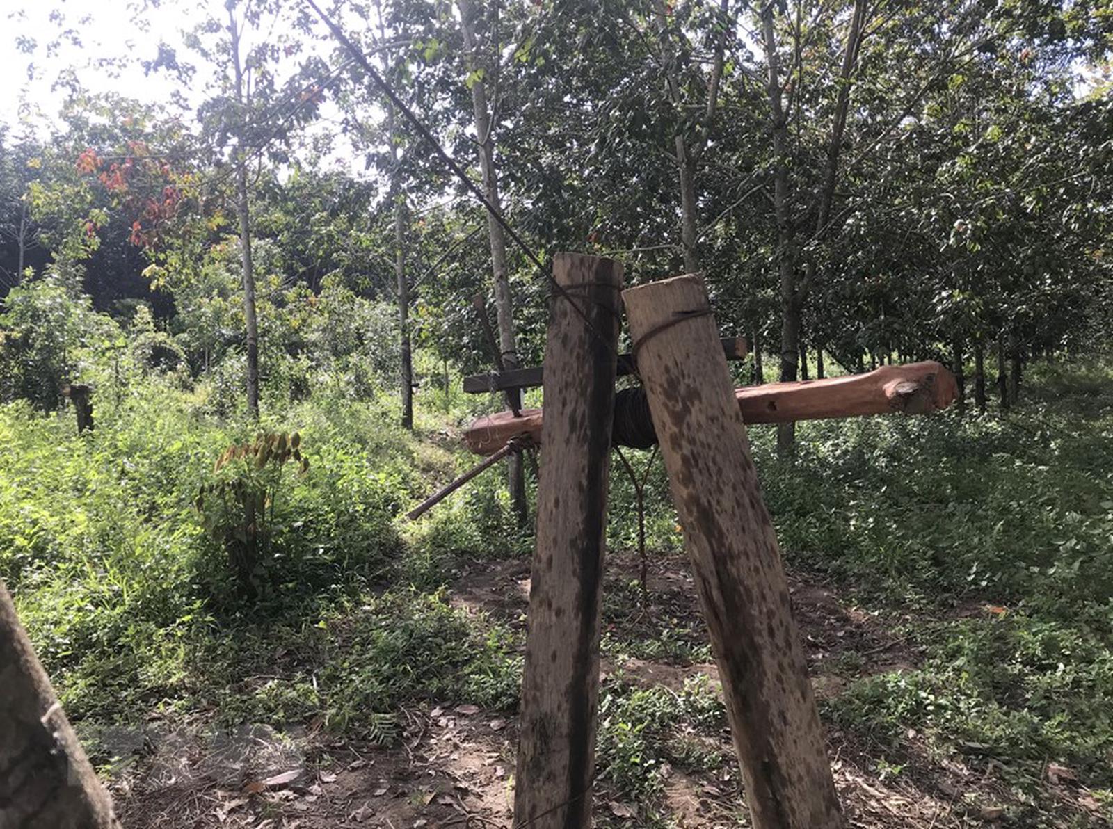 Hệ thống cáp treo được kết nối bởi những khúc gỗ với sợi thép không chắc chắn. (Ảnh: Khoa Chương/TTXVN)