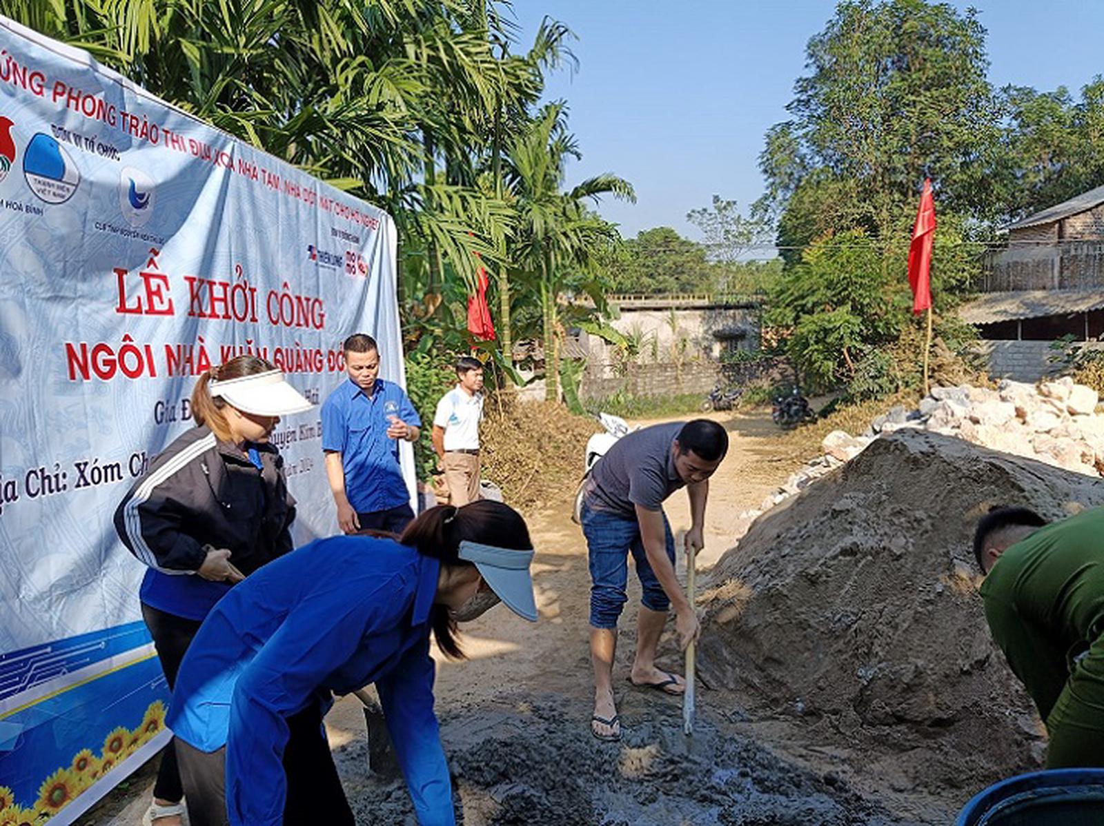 Đoàn thanh niên tỉnh Hoà Bình hỗ trợ người nghèo xoá nhà tạm, nhà dột nát. Ảnh: CTV