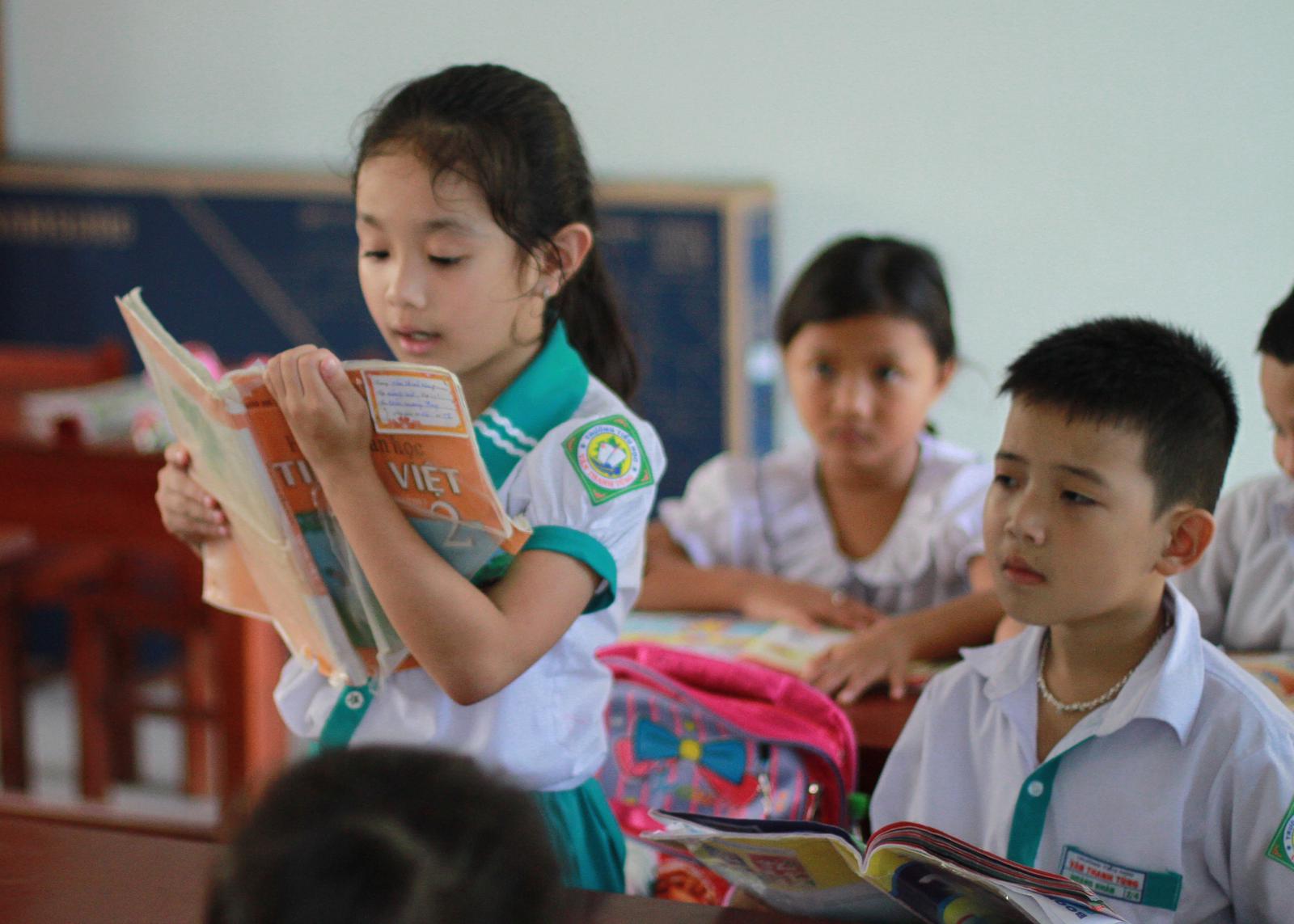 Học sinh Trường Tiểu học Văn Thanh Tùng trong phòng học mới