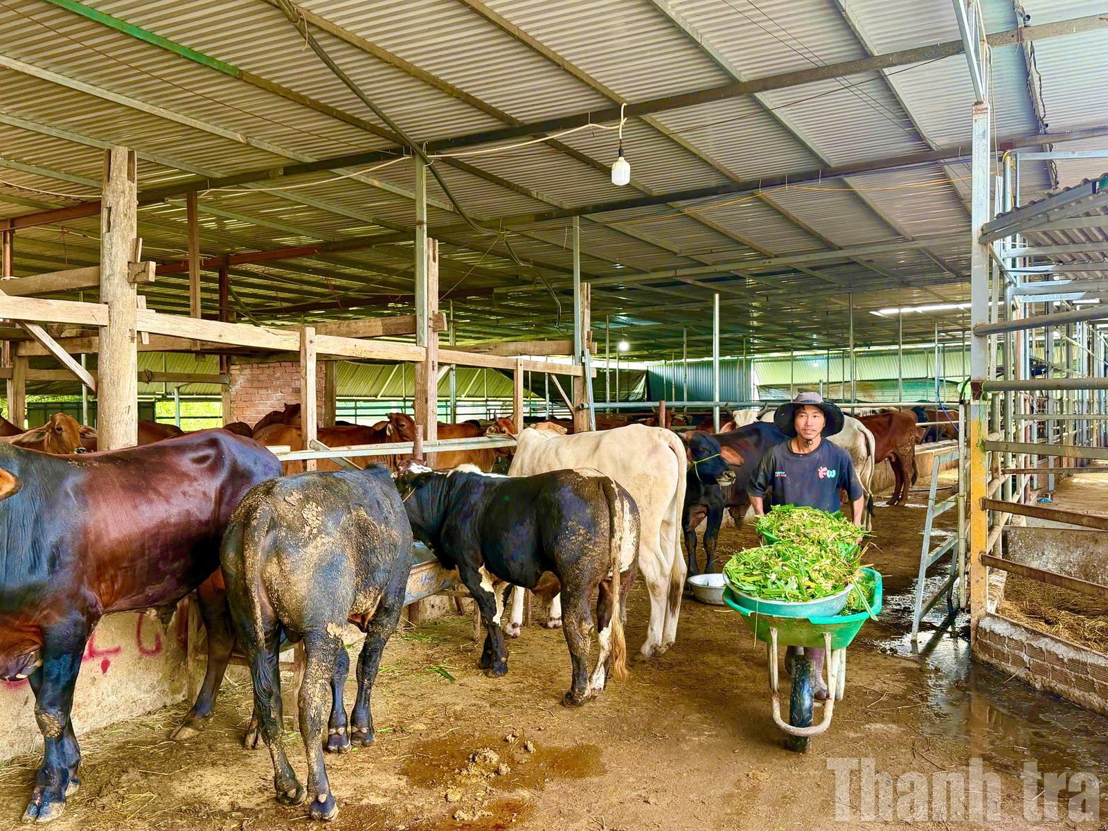 Hiện HTX đang liên kết với hơn 30 hộ dân, tổng đàn khoảng 600 con. Mỗi quý, đơn vị cung ứng ra thị trường 150 – 200 con bò thịt. Khi tham gia liên kết, người dân được hỗ trợ con giống chất lượng, tập huấn kỹ thuật nuôi nhốt thâm canh, tiêm phòng vắc xin và đặc biệt là được HTX cam kết thu mua với giá cao hơn thị trường 1.000 – 3.000 đồng/kg thịt hơi. Nhờ đó, trung bình mỗi hộ nuôi từ 3 – 10 con bò, lợi nhuận đạt 1,3 – 1,5 triệu đồng/con sau khi trừ chi phí.
