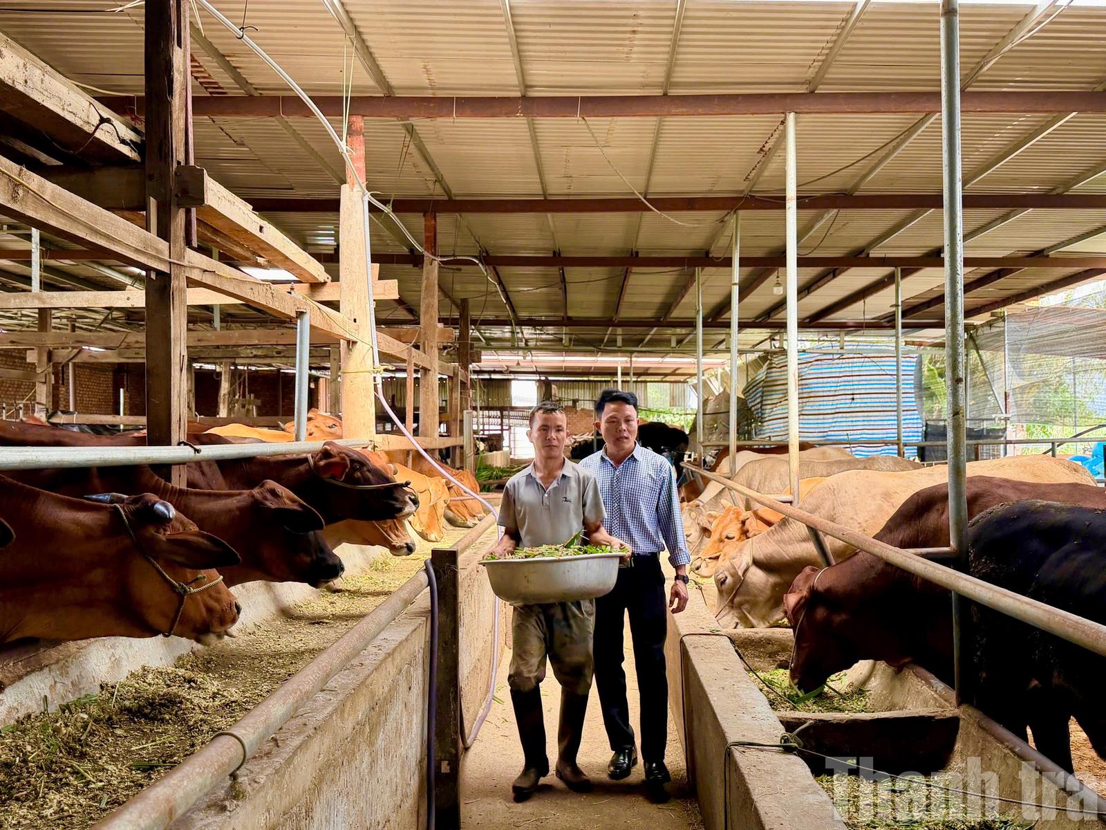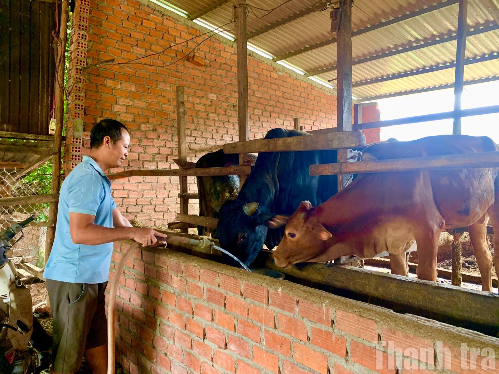 Gia đình anh Đoàn Ngọc Sự ở thôn 7 là ví dụ điển hình. Thiếu đất sản xuất, thu nhập bấp bênh và đông con khiến cuộc sống gia đình luôn trong tình cảnh chật vật. Năm 2021, anh được Hội Nông dân xã hỗ trợ vay 30 triệu đồng để nuôi bò sinh sản. Tận dụng các khoảnh đất trống để trồng cỏ, kết hợp với sự hướng dẫn từ cán bộ khuyến nông về kỹ thuật chăm sóc và phòng bệnh, đàn bò của anh đã phát triển lên 6 con. Nhờ đó, thu nhập của gia đình tăng lên khoảng 100 triệu đồng/năm. “Chúng tôi đã ổn định cuộc sống, các con được đầu tư học hành đầy đủ hơn”, anh Sự phấn khởi chia sẻ.