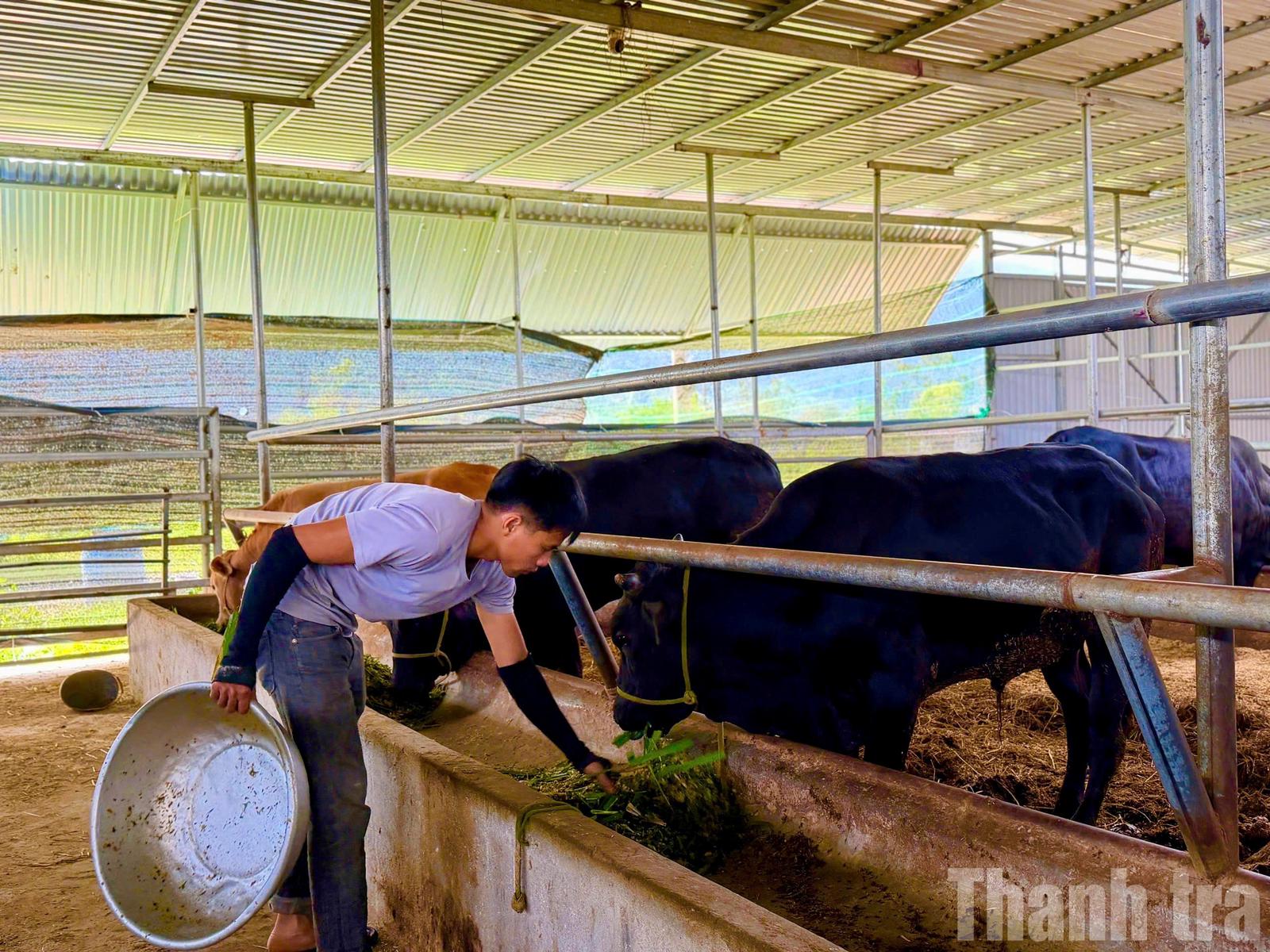 Các mô hình liên kết chăn nuôi bò ở xã Hòa Sơn, Đắk Lắk không chỉ mang lại lợi nhuận cao mà còn giúp người dân tận dụng nguồn phân chuồng bón cho cây trồng, giảm chi phí đầu tư và tạo thành chuỗi sản xuất bền vững. Ảnh: NG