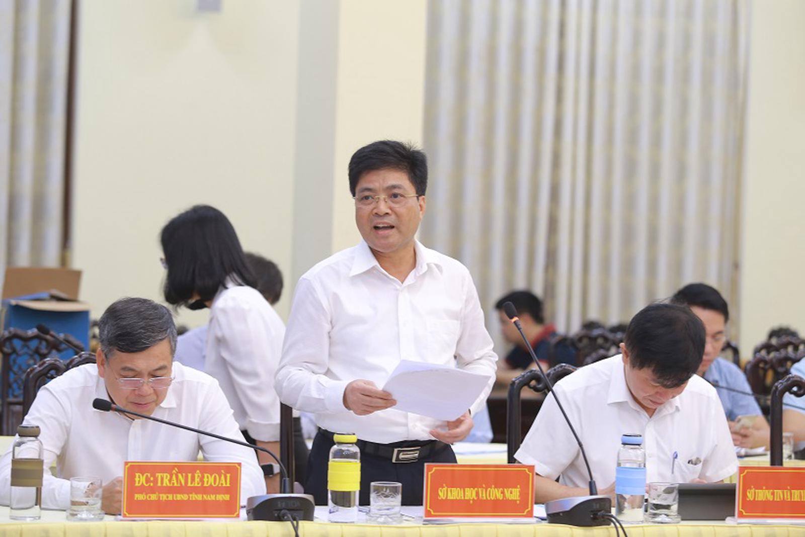 Ông Trần Minh Hoan - Giám đốc Sở KH&CN Nam Định phát biểu tại buổi làm việc giữa Bộ KH&CN với UBND tỉnh về tình hình phát triển KT-XH và hoạt động KH&CN năm 2022 và 4 tháng đầu năm 2023. Ảnh: Sở KHCN Nam Định.