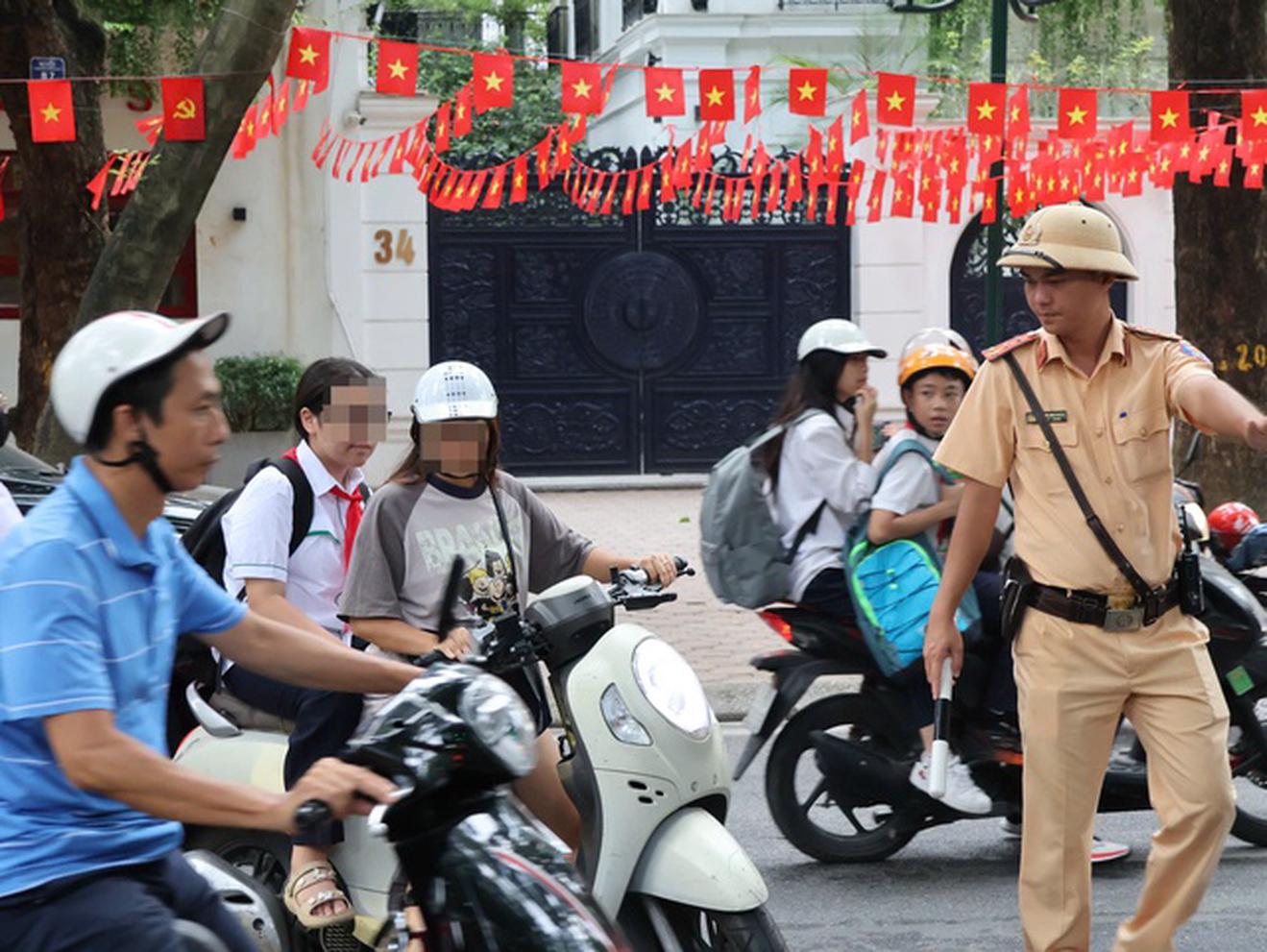 Lực lượng chức năng đã xử lý hàng loạt trường hợp vi phạm giao thông của học sinh. Ảnh: VGP/NN