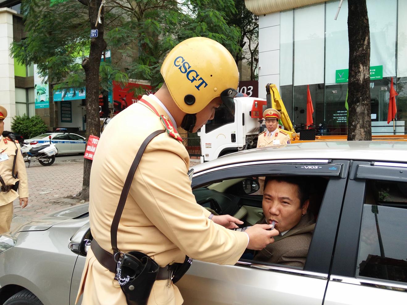 VIệc kiểm tra nồng độ cồn đối với người điều khiển phương tiện được duy trì trong suốt những ngày nghỉ Tết (ảnh: D.Hiệp)