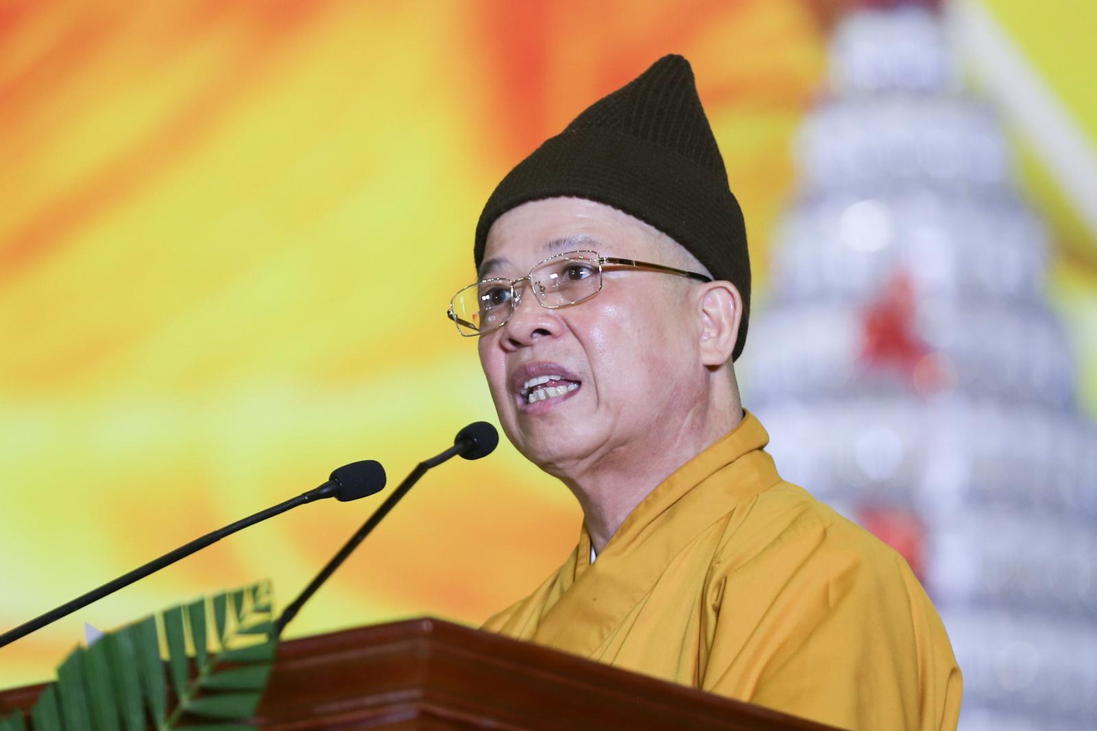 Phó Chủ tịch Ủy ban Trung ương MTTQ Việt Nam Ngô Sách Thực đánh giá cao những đóng góp của Phật giáo Quảng Ninh. Ảnh: T.V