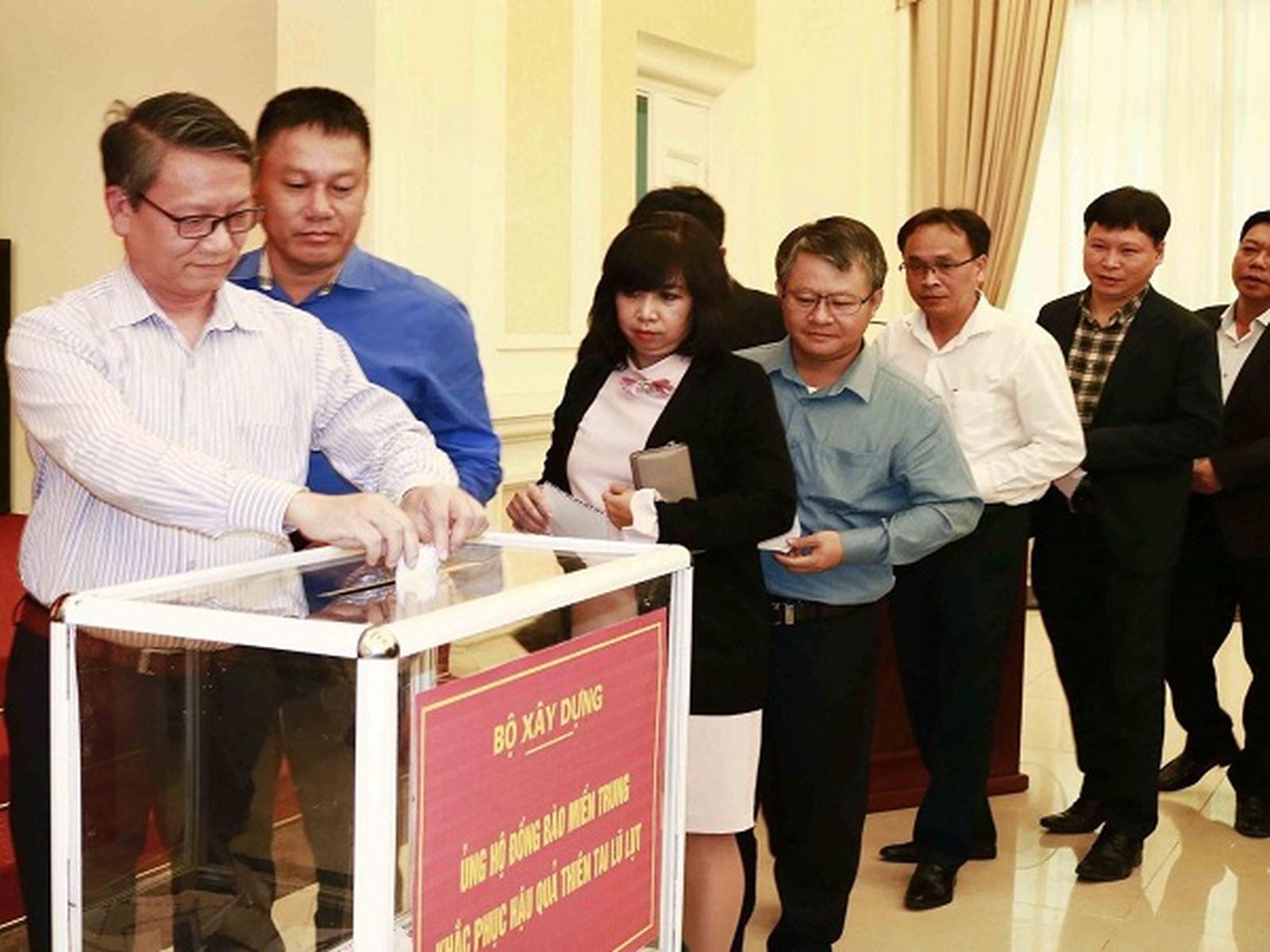 Ngay trong buổi lễ quyên góp này, số tiền ủng hộ của công chức, viên chức, người lao động và các đơn vị, doanh nghiệp trực thuộc Bộ Xây dựng là hơn 4,2 tỷ đồng. Trong đó, Tổng công ty Xi măng Việt Nam 02 tỷ đồng; Tổng công ty Xây dựng Hà Nội 01 tỷ đồng; Tổng công ty HUD 500 triệu đồng; Tổng công ty LILAMA 500 triệu đồng; Tổng công ty Viglacera 200 triệu đồng.