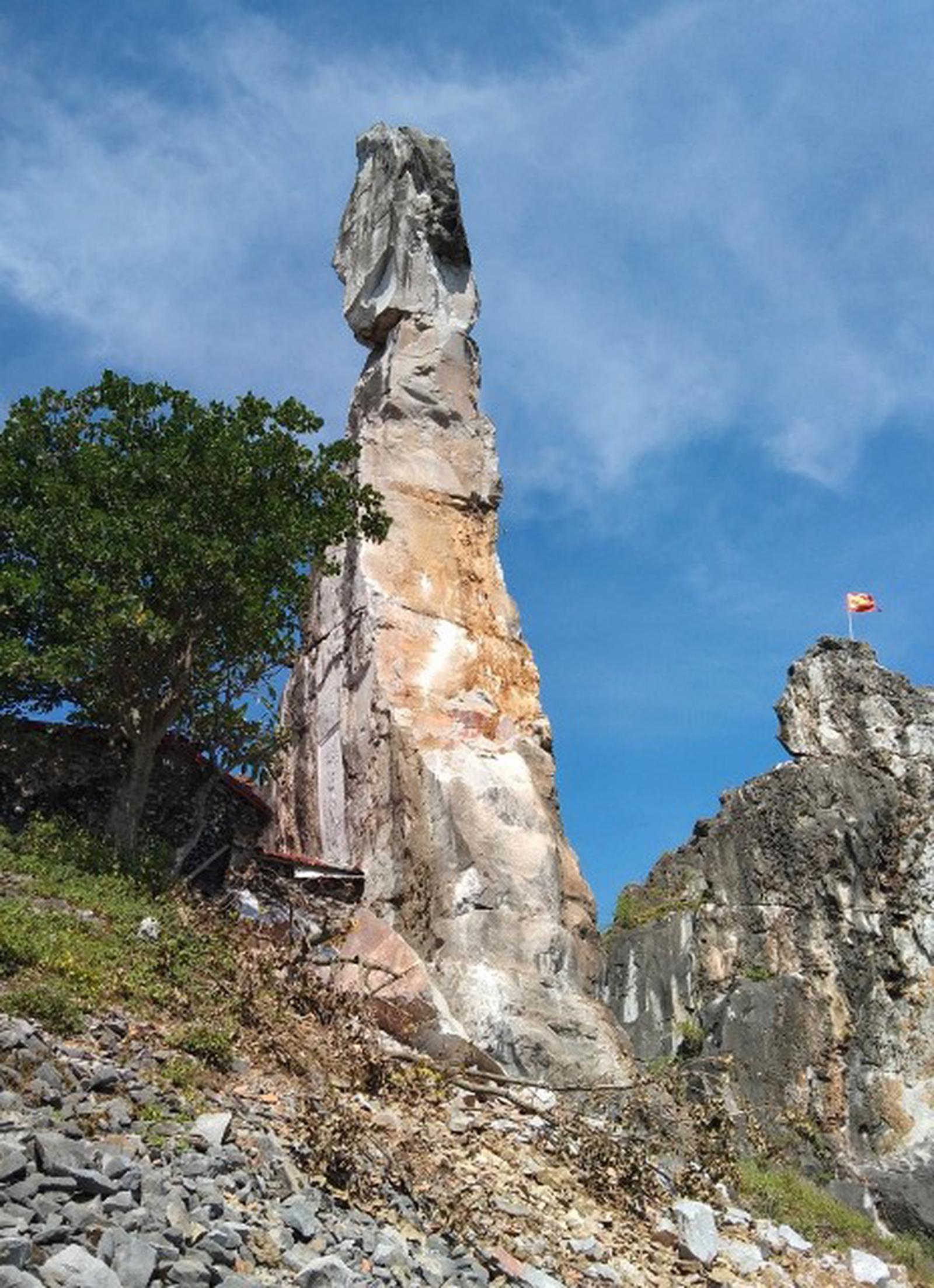 Hòn Vọng Phu bị sét đánh sạt lở đêm 15/6/2022. Ảnh: Hương Trà