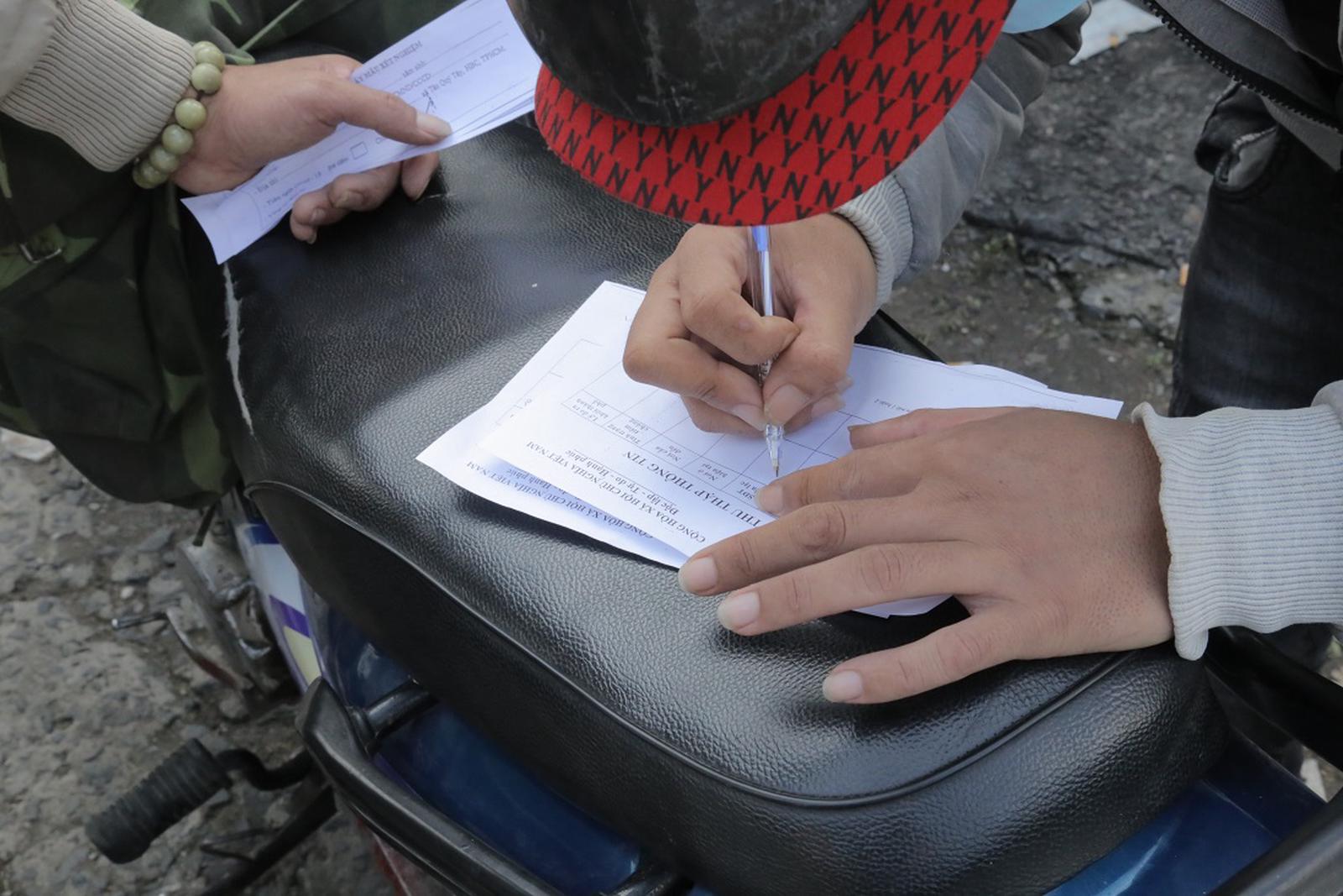 Người dân được phát phiếu để điền thông tin. Ảnh: CTV