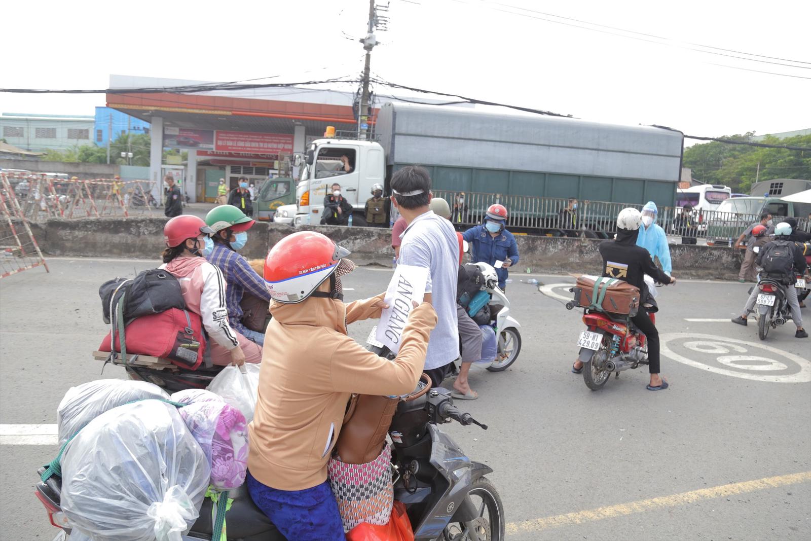 TP HCM đã huy động nhiều xe khách, xe tải đến chốt kiểm soát giáp ranh tỉnh Long An tại thị trấn Tân Túc trên Quốc lộ 1A để lên phương án đưa người dân về quê. Tại đây, người dân sẽ được chia thành nhiều nhóm liên quan tới các địa phương cần về như: Tiền Giang, Bến Tre, Cà Mau, Bạc Liêu…