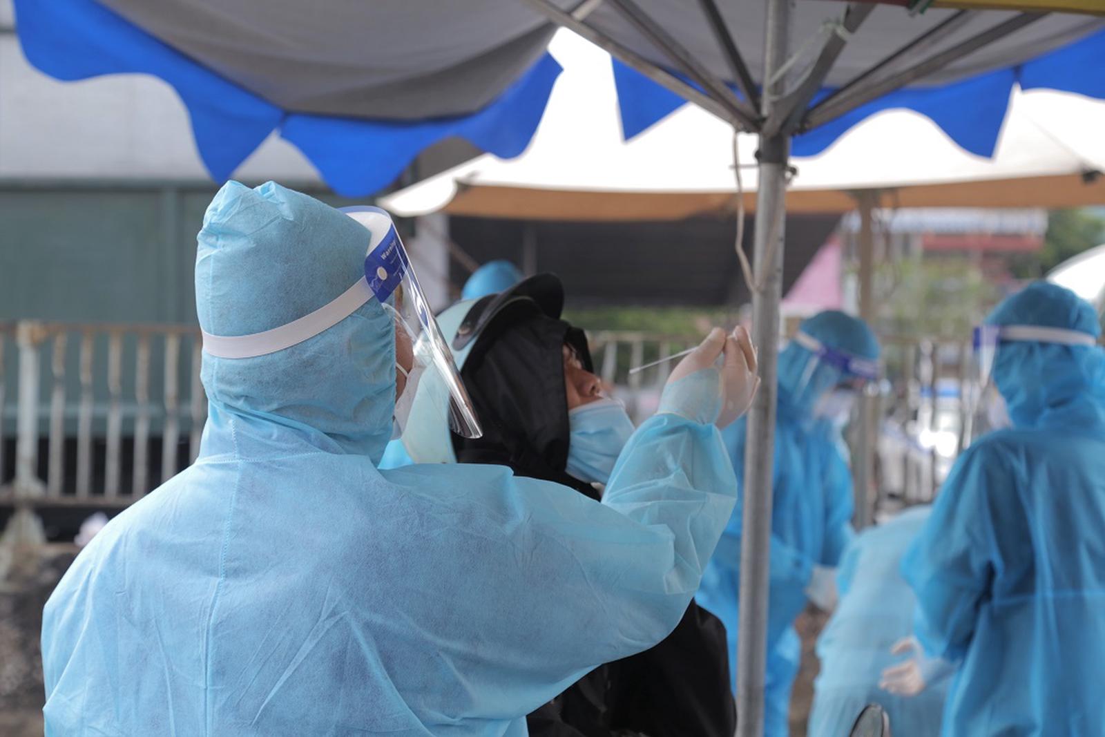 Cơ quan chức năng bố trí lực lượng y tế làm công tác xét nghiệm nhanh cho người dân ngay gần khu vực chốt kiểm soát. Ảnh: CTV