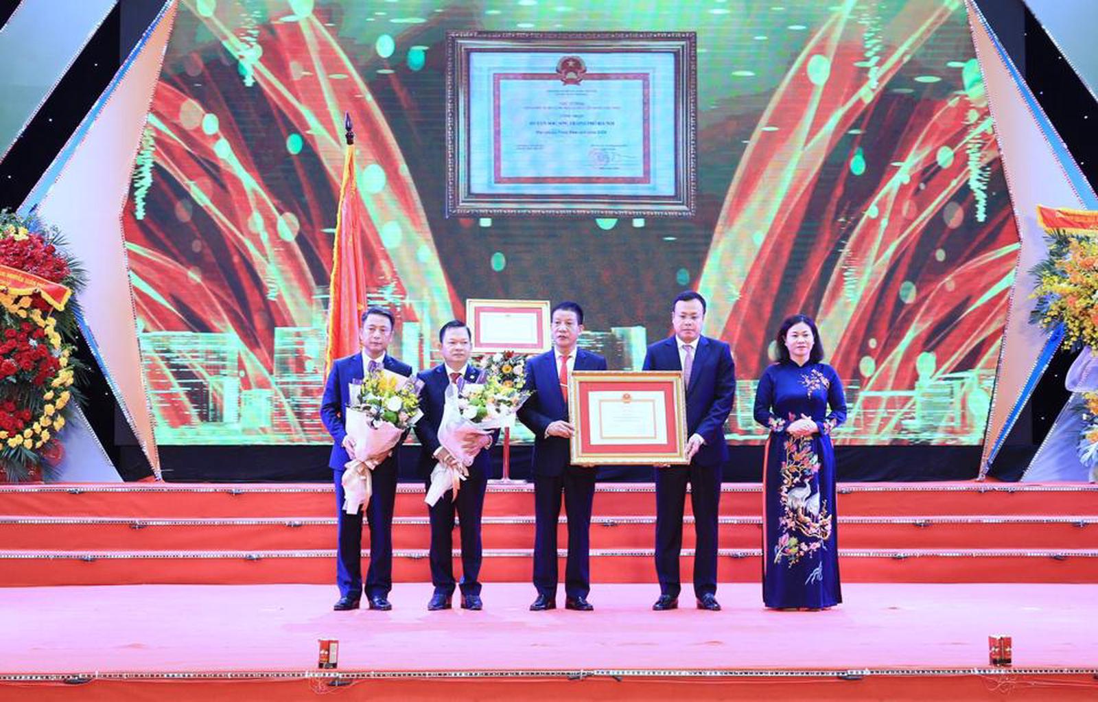 Thừa uỷ quyền của Chủ tịch nước, Phó Bí thư Thường trực Thành uỷ Hà Nội Nguyễn Thị Tuyến trao tặng Huân chương Lao động hạng Ba (lần thứ hai) cho Đảng bộ, chính quyền và Nhân dân huyện Sóc Sơn.