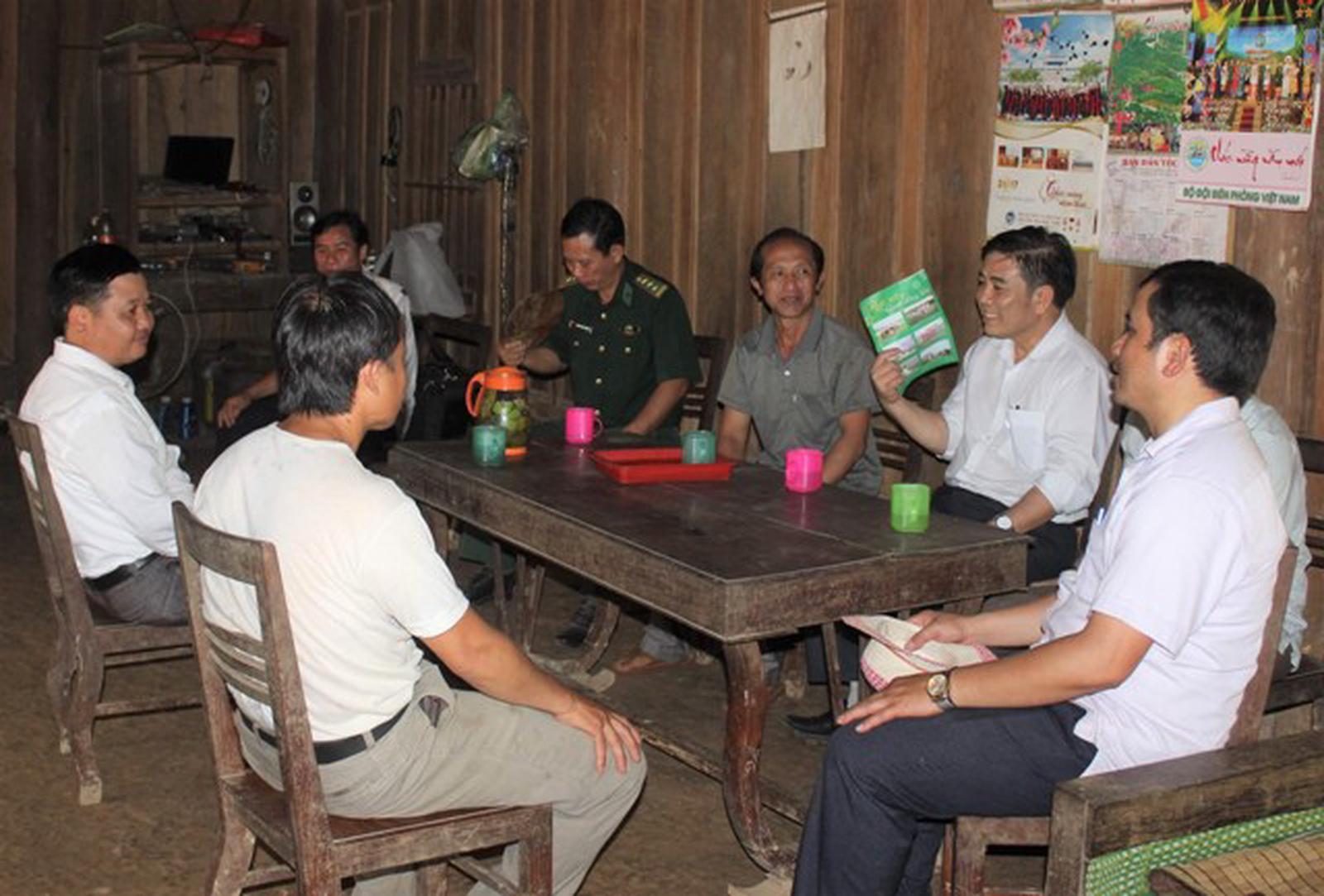 Lãnh đạo huyện Tương Dương về với bản làng gặp gỡ già làng, trưởng bản, người có uy tín. Ảnh: Lương Huyền
