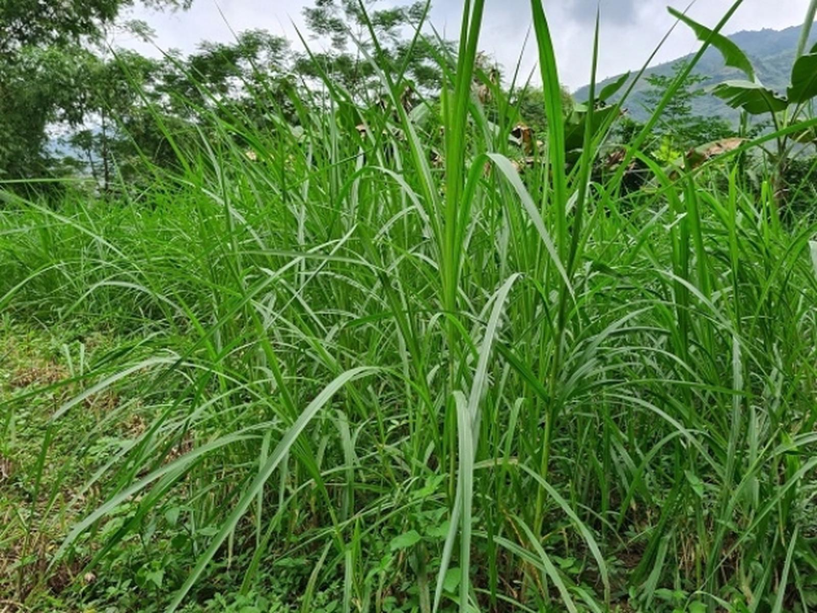 Gia đình ông Miền tận dụng mọi diện tích đất để trồng cỏ nuôi bò. Ảnh: Bùi Bình