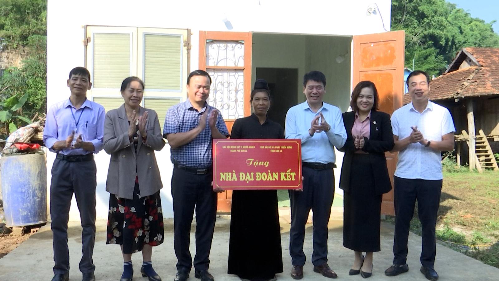 Lãnh đạo thành phố Sơn La thăm, tặng quà và bàn giao nhà “Đại đoàn kết” cho hộ nghèo trên địa bàn. Ảnh: sonla.gov.vn