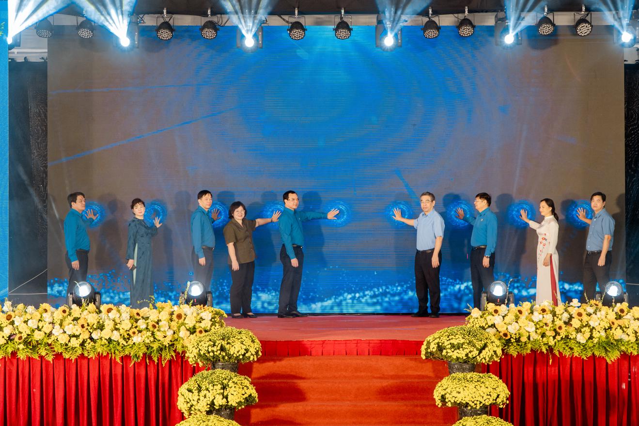 Các đại biểu bấm nút Khai mạc “Chợ Tết Công đoàn - Xuân 2026”. Ảnh: NĐ