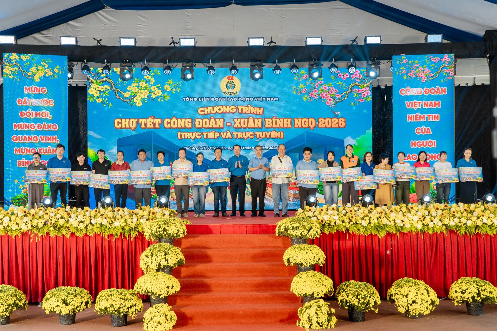 Nhiều chương trình thiết thực, giàu ý nghĩa nhân văn, mang thương hiệu công đoàn được tổ chức rộng khắp, tiêu biểu như Chương trình “Chợ Tết Công đoàn – Xuân 2026” theo hình thức trực tiếp và trực tuyến; các chương trình ở cấp Tổng Liên đoàn như “Chuyến bay Công đoàn”, “Chuyến tàu Công đoàn – Xuân 2026”; cùng với đó là các hoạt động “Tết Sum vầy”, Ngày hội công nhân, chuyến xe đưa, đón đoàn viên, người lao động về quê đón Tết.