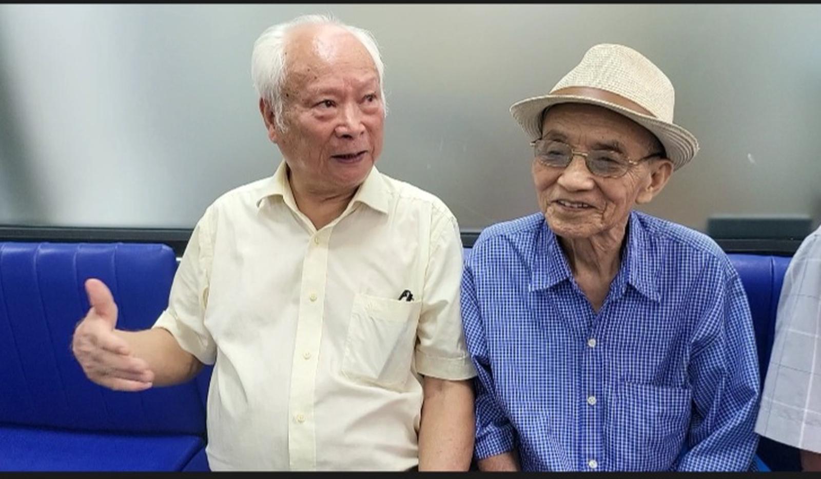 Thương binh Nguyễn Văn Quang (bìa phải) và bác sĩ Hoàng Đạt đang trò chuyện. Ảnh: BM