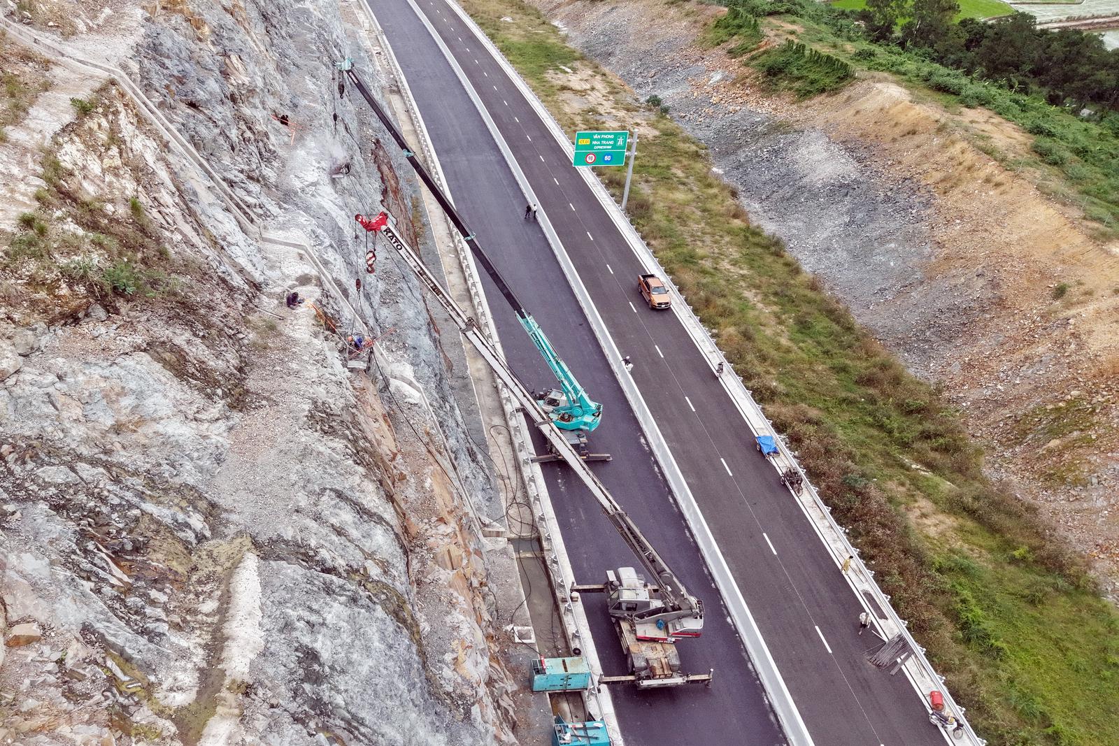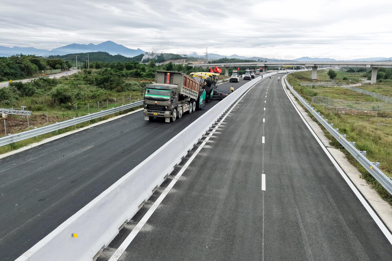 “Công nhân trải thảm bê tông nhựa lớp trên cùng, lắp đặt hộ lan và hoàn thiện sơn kẻ vạch đường”, ông Đông nói.