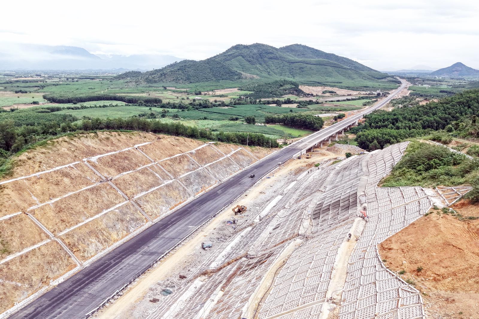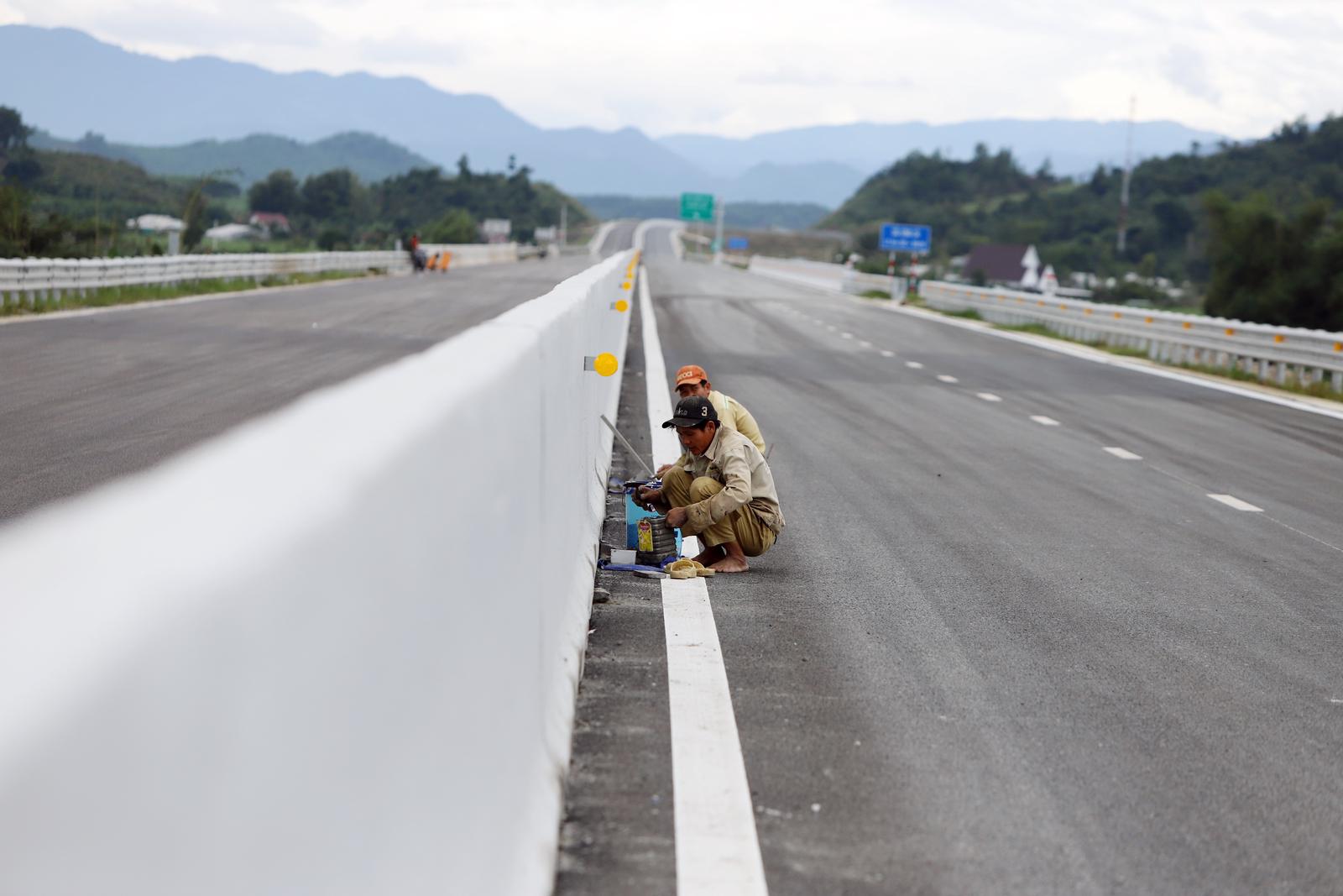 Kỹ sư Nguyễn Thanh Đông - quản lý công trình cao tốc Vân Phong - Nha Trang của Tập đoàn Sơn Hải, cho biết dọc tuyến do đơn vị thi công cơ bản hoàn thành, đang thực hiện những công đoạn cuối cùng để đưa vào khai thác.