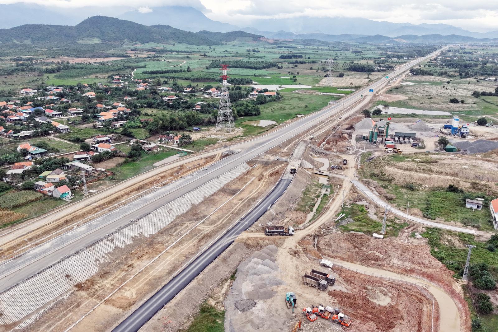 Dọc cao tốc qua thị xã Ninh Hòa do Công ty Cổ phần Lizen thực hiện đã rõ hình hài. Nhiều vị trí hoàn thành thảm nhựa.