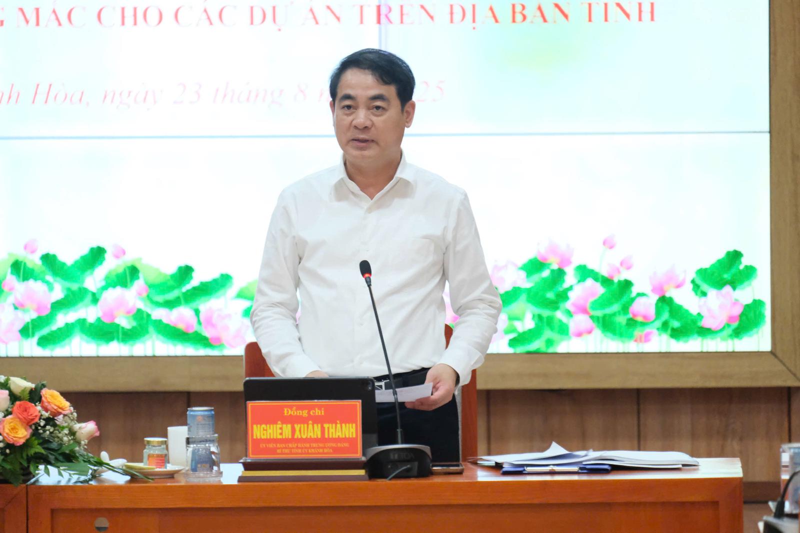 Sau khi nghe báo cáo của tỉnh Khánh Hòa và ý kiến của lãnh đạo các bộ, ngành chức năng là thành viên Ban Chỉ đạo, phát biểu kết luận buổi làm việc, Phó Thủ tướng Thường trực Chính phủ Nguyễn Hòa Bình nhấn mạnh, tháo gỡ khó khăn, vướng mắc cho các dự án tồn đọng là một chủ trương lớn của Bộ Chính trị và Quốc hội đã có Nghị quyết số 170, Chính phủ có các chỉ đạo quyết liệt với các giải pháp đồng bộ. Thực hiện các chỉ đạo, thông báo, Nghị quyết, kết luận của Trung ương, thời gian qua nhiều dự án có khó khăn, vướng mắc đã được xem xét xử lý, giải quyết, qua đó đã đưa được một nguồn lực đáng kể vào thúc đẩy tăng trưởng và phát triển kinh tế; rút ra nhiều bài học hay, kinh nghiệm quý trong xử lý vấn đề này.
