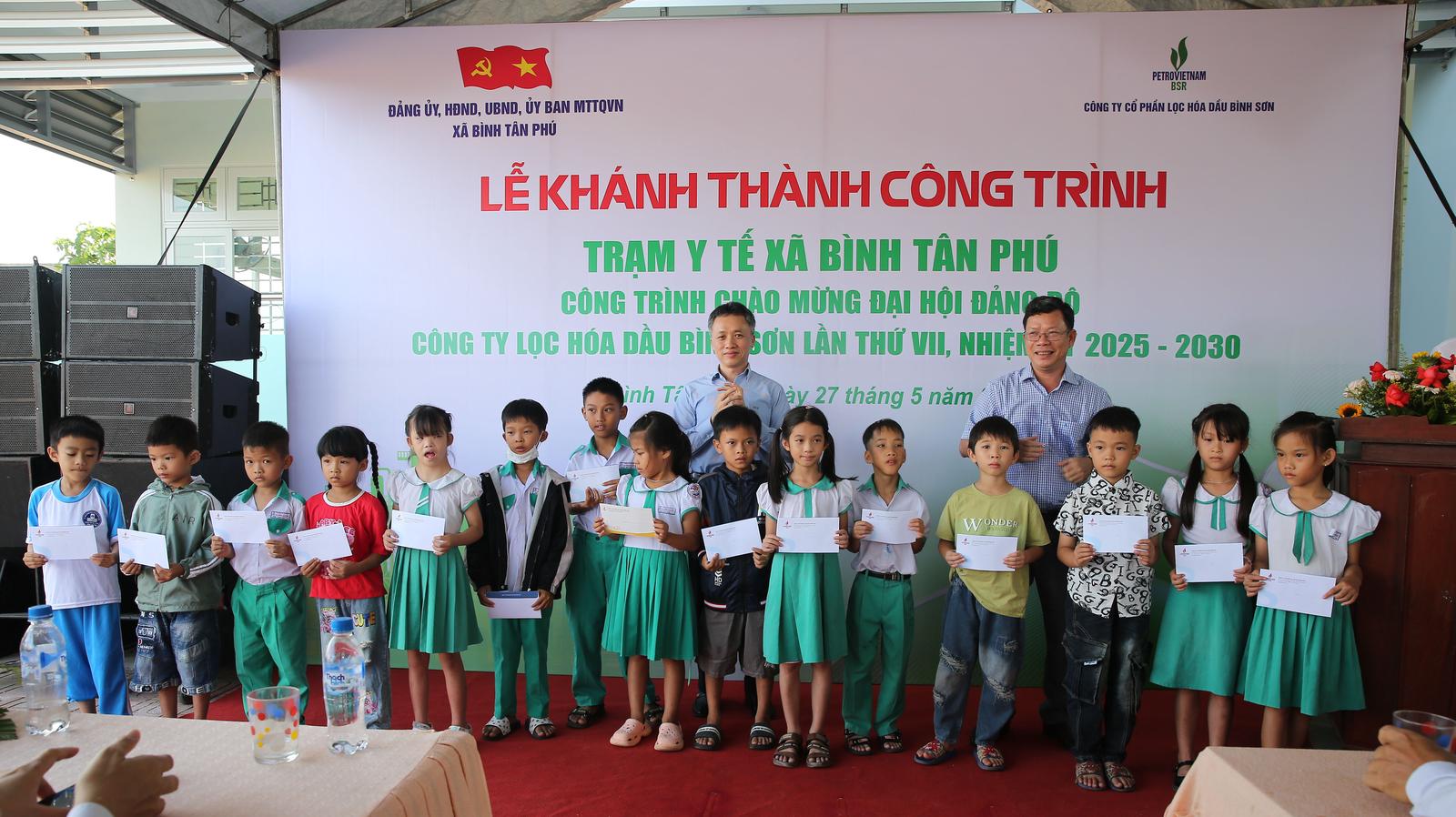 Tại Lễ khánh thành, đại diện UBND huyện Bình Sơn, xã Bình Tân Phú và BSR đã cùng cắt băng khánh thành công trình. Đồng thời, các đại biểu tham dự cũng đã thực hiện nghi thức gắn biển công trình Trạm Y tế xã Bình Tân Phú để chào mừng Đại hội đại biểu Đảng bộ BSR lần thứ VII nhiệm kỳ 2025 - 2030. BSR cũng đã tổ chức trao 40 phần quà cho các em học sinh hoàn cảnh khó khăn có thành tích cao trong học tập nhân dịp kết thúc năm học 2024 - 2025.