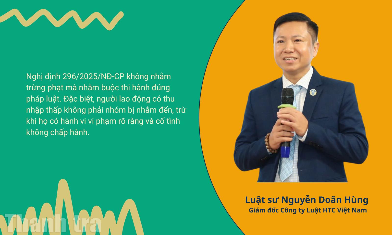 Tuy nhiên, luật sư Nguyễn Doãn Hùng nhấn mạnh, cần hiểu rằng: Nghị định 296 không nhằm trừng phạt, mà nhằm buộc thi hành đúng pháp luật. Đặc biệt, người lao động có thu nhập thấp không phải nhóm bị nhắm đến, trừ khi họ có hành vi vi phạm rõ ràng và cố tình không chấp hành.