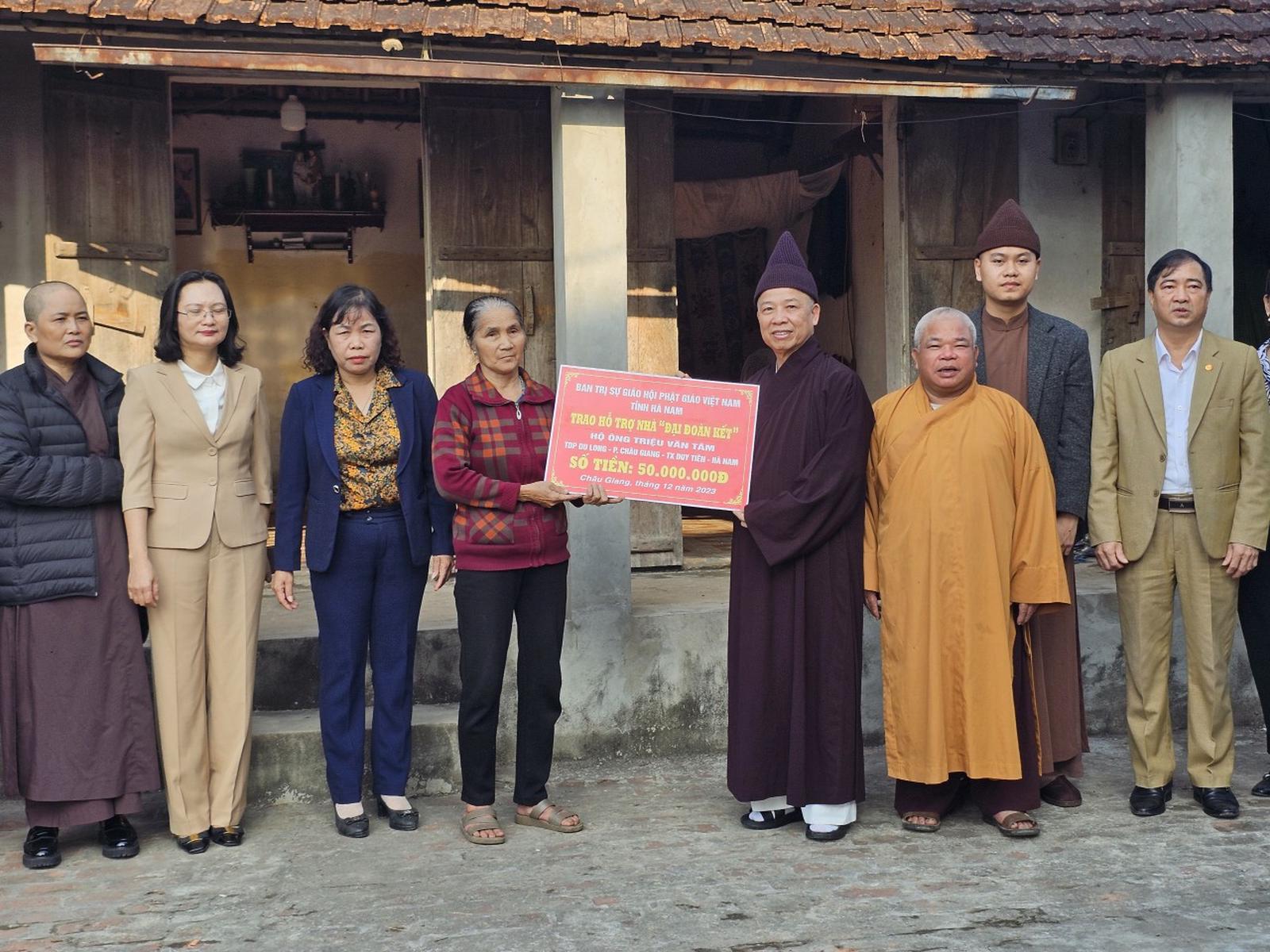 Mùa Giáng sinh năm nay, Giáo hội Phật giáo tỉnh Hà Nam đã trao tặng kinh phí xây nhà đại đoàn kết cho các hộ giáo dân nghèo trên địa bàn tỉnh. Hoà thượng Thích Thanh Quyết, Trưởng ban Trị sự Phật giáo Hà Nam cùng Mặt trận Tổ quốc, chính quyền các cấp đã trao kinh phí cho gia đình ông Triệu Văn Tâm, Tổ dân phố Du Long, phường Châu Giang, thị xã Duy Tiên, Hà Nam 50 triệu đồng để xây nhà.