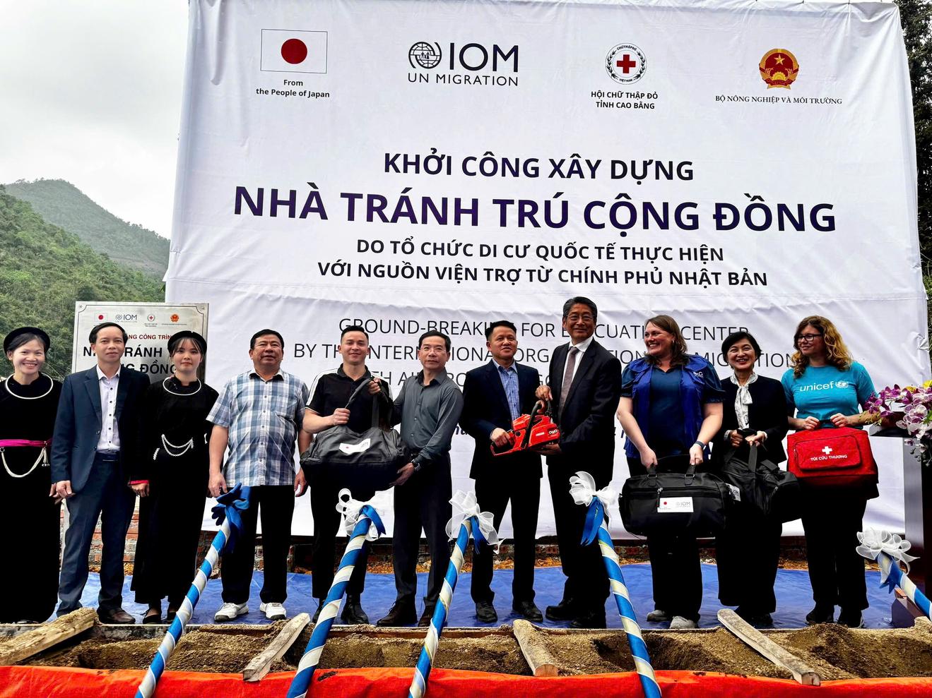 Tại Cao Bằng, IOM sử dụng nguồn viện trợ từ Chính phủ Nhật Bản để phát 1.100 thùng hàng (trị giá 1,7 tỷ đồng) cho 4.965 người tại 8 xã; và xây dựng 1 nhà tránh trú tại bản Chồi, xã Đình Phùng (trị giá 1,55 tỷ đồng), dự kiến hoàn thành tháng 5, đảm bảo nơi trú tránh an toàn cho 150 người.