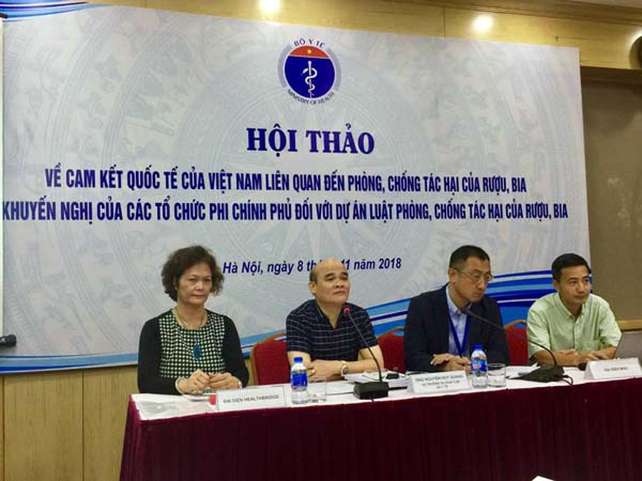 Tại hội thảo, ông Nguyễn Huy Quang,Vụ trưởng Vụ Pháp chế (Bộ Y tế) cho biết, dự thảo Luật Phòng, chống tác hại của rượu, bia đang chịu rất nhiều tác động. Trong khi đó, việc sử dụng rượu, bia đang là trở ngại lớn trong việc đạt được 13 trong tổng số 17 mục tiêu và 52 chỉ tiêu phát triển bền vững. Sử dụng rượu, bia là trở ngại cho sự phát triển bởi chúng hủy hoại nguồn nhân lực và cản trở sự phát triển bền vững của con người.