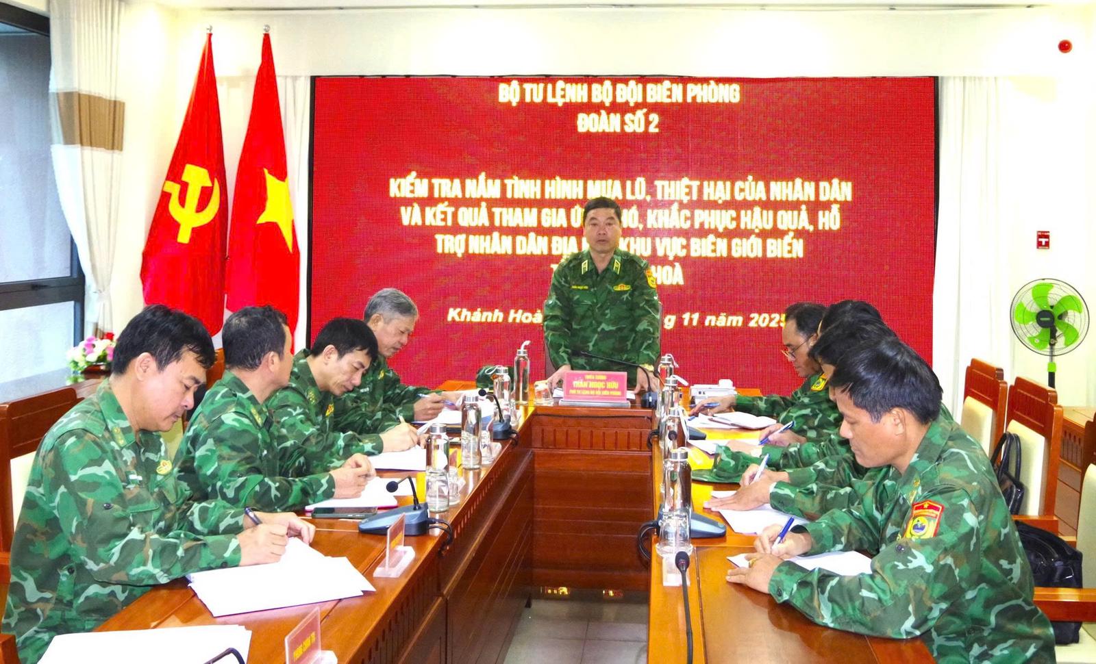 Sau khi nghe báo cáo, Thiếu tướng Trần Ngọc Hữu ghi nhận tinh thần chủ động, kịp thời của cán bộ, chiến sĩ Bộ đội Biên phòng tỉnh Khánh Hòa trong phòng, chống thiên tai, đồng thời yêu cầu các đơn vị tiếp tục huy động tối đa lực lượng và phương tiện để khắc phục hậu quả; bổ sung vật chất, dự trữ sẵn sàng chiến đấu; bảo dưỡng trang thiết bị theo đúng phương châm “4 tại chỗ” nhằm đảm bảo đáp ứng mọi tình huống khẩn cấp.